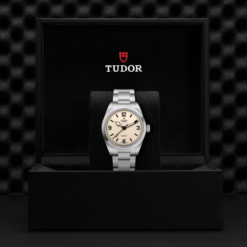 The TUDOR Ranger Steel Bracelet Beige 39mm Dial Watch is a modern expedition watch celebrating the spirit of daring adventure. It is a robust tool watch, complete with Manufacture Calibre MT5402, a 39mm case, and a “T-fit” bracelet. The Ranger model respects the aesthetic standards established in the course of its history, especially its dial in “Dune White” with Arabic numerals at 3, 6, 9 and 12 o’clock, whilst incorporating new state-of-the-art technical elements.