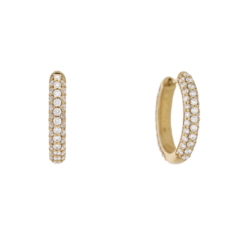 18ct Yellow Gold 3-Row Diamond Hoop Earrings
