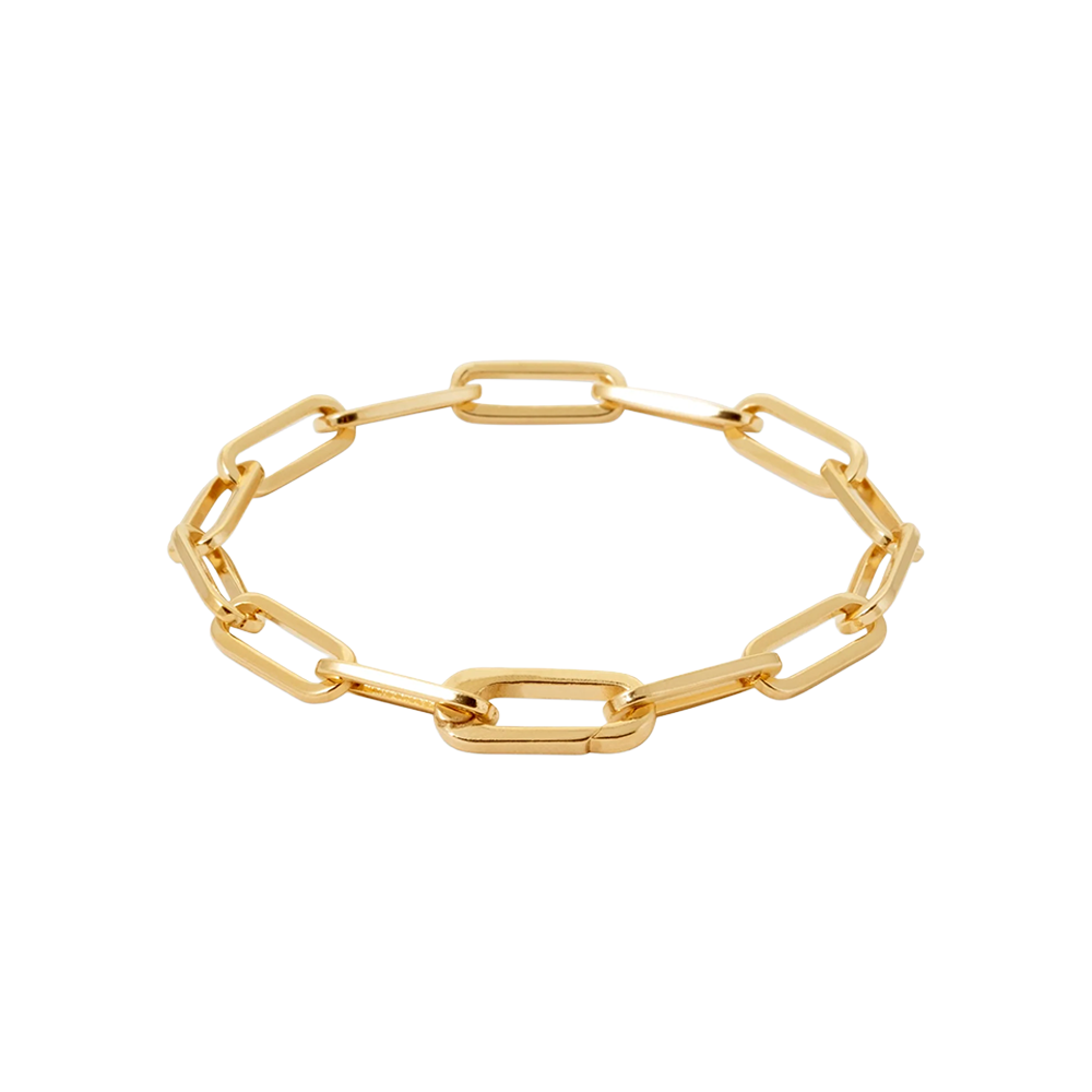 This gold-plated paper-link bracelet features rectangular links for a modern, architectural aesthetic. It is finished with a push clasp, combining effortless wearability with a polished, contemporary design.