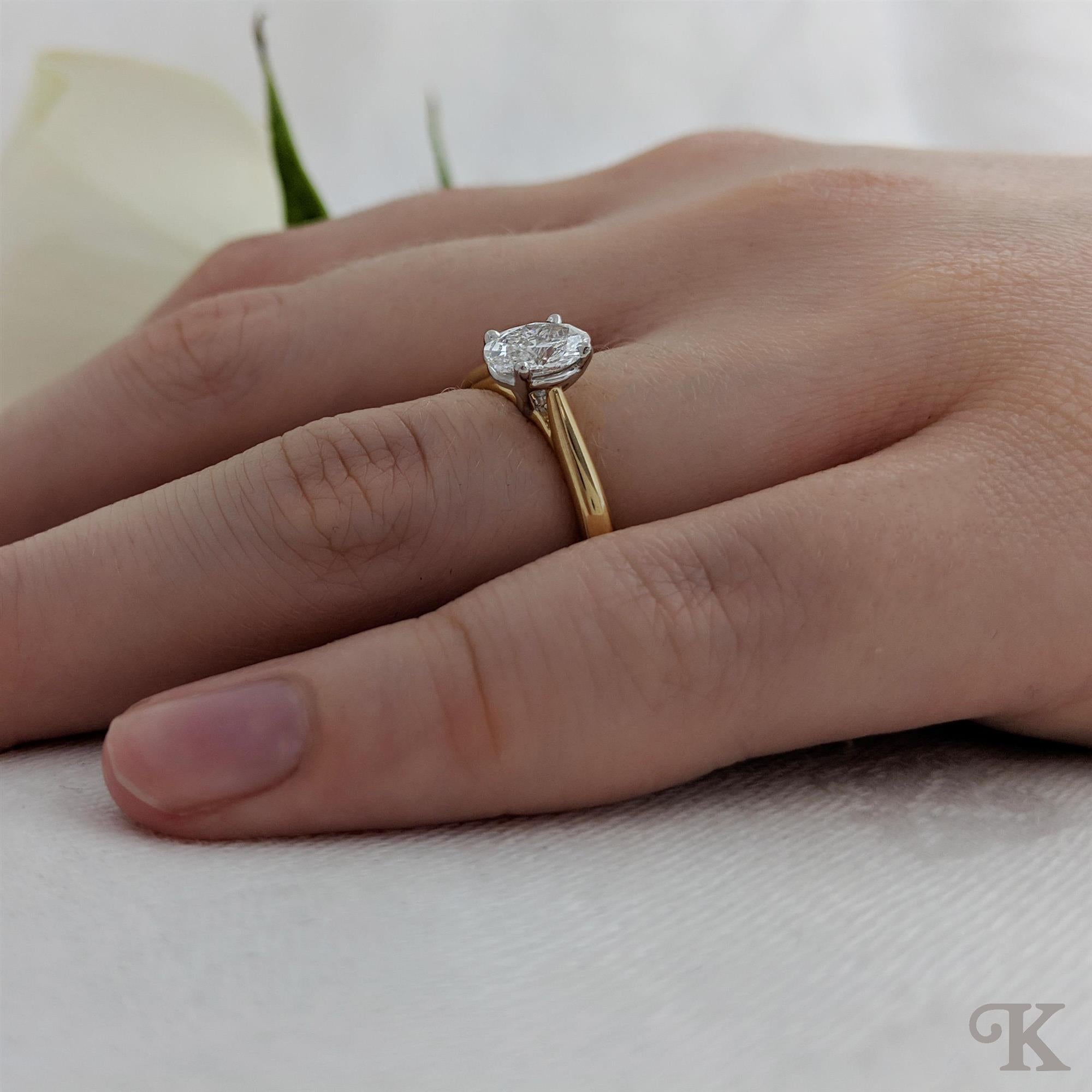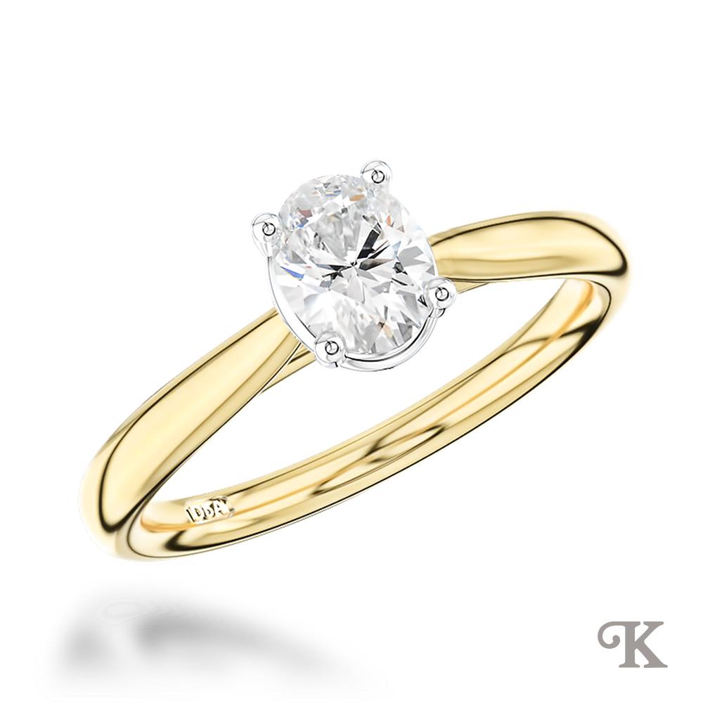 18ct Yellow Gold Shank and Platinum Head Solitaire This timeless design has been crafted with our precise attention to the intricate collet. Classical and everlasting. 0.70ct total F Colour