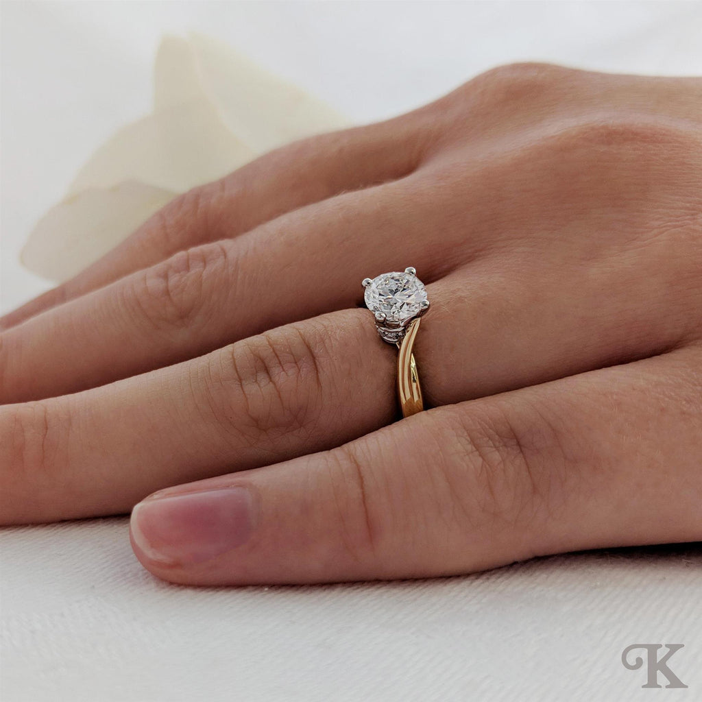 18ct Yellow Gold Shank and Platinum Head Solitaire This timeless design has been crafted with our precise attention to detail. Classical and everlasting. 0.74ct total G Colour