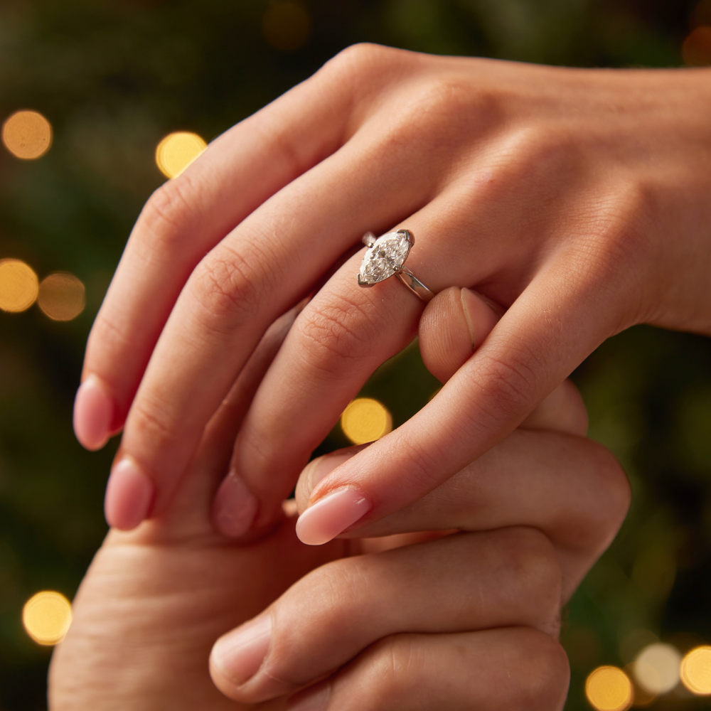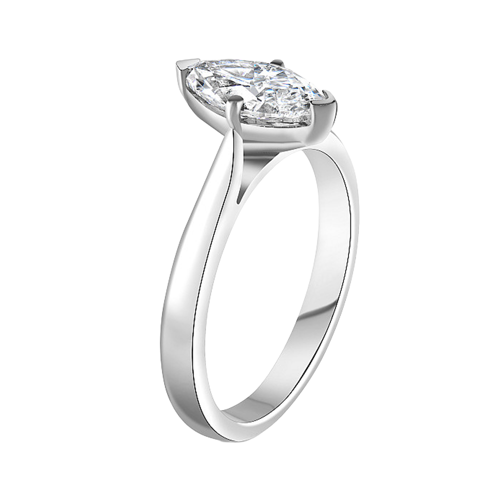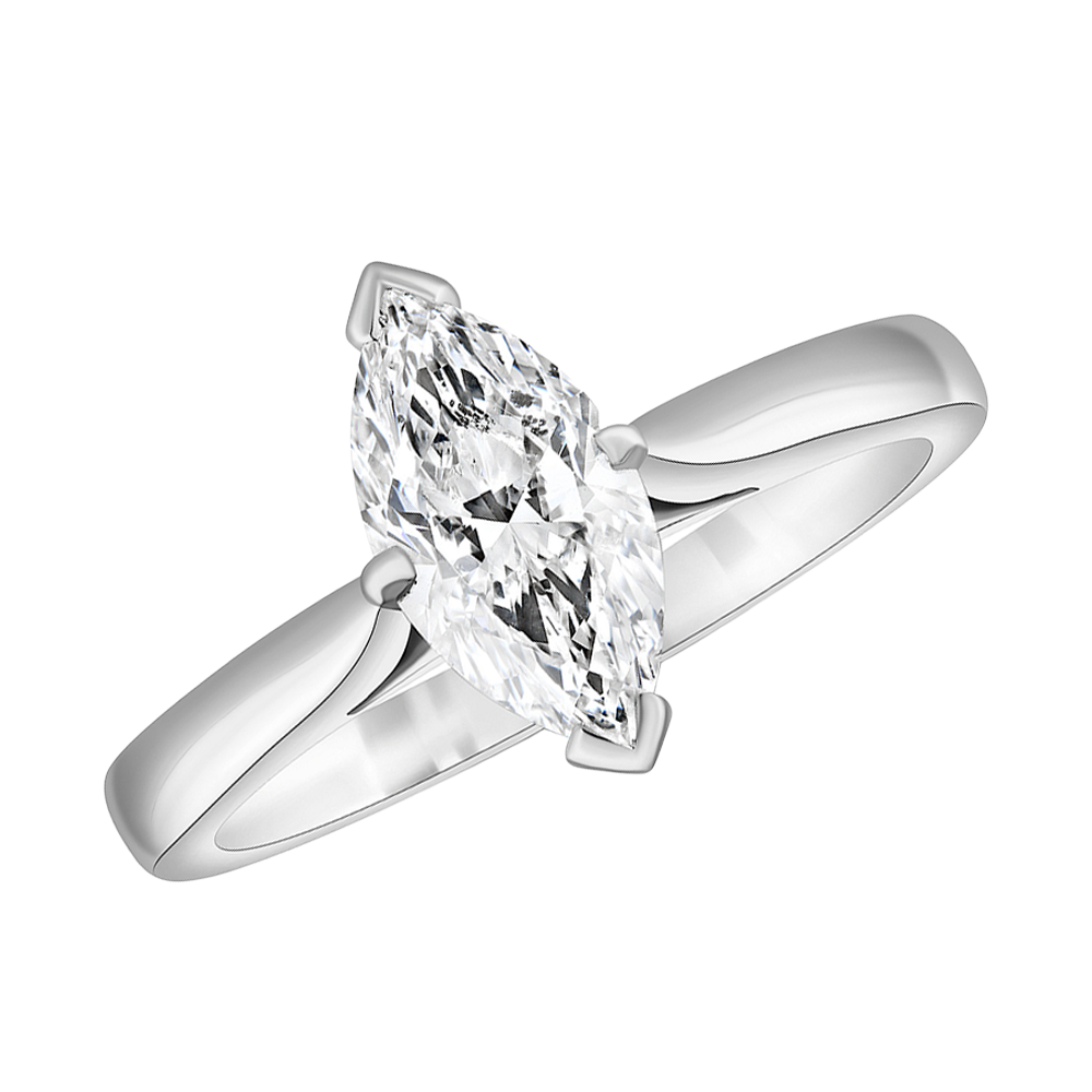 This elegant, unique platinum engagement ring features a 2ct marquise-cut diamond, renowned for its distinctive silhouette and exceptional sparkle. Set in a sleek platinum band, the marquise stone draws the eye with its elongated silhouette.