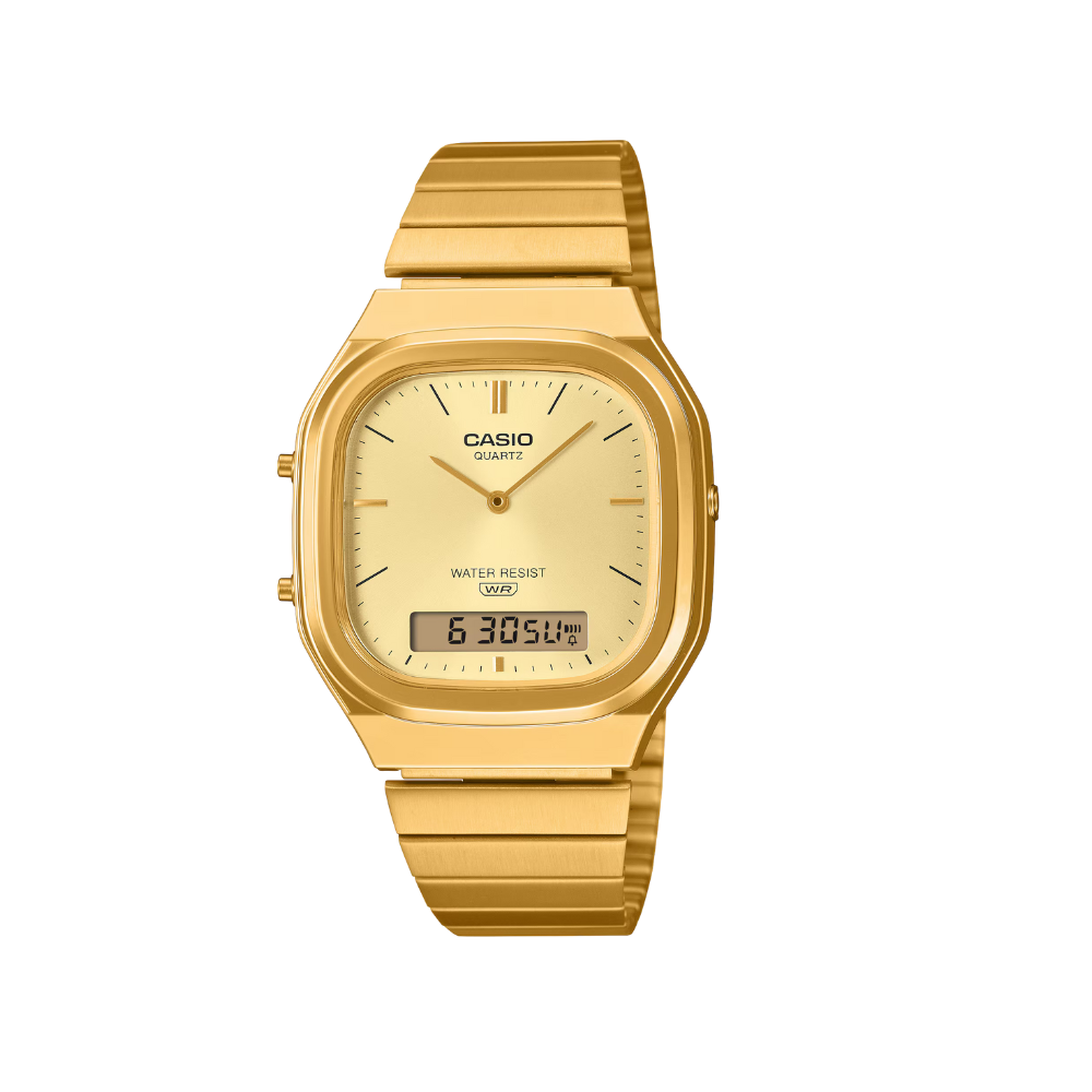 Offering the same seamless fusion of past and present found across the Casio Vintage line, this gold-tone edition delivers a standout statement.