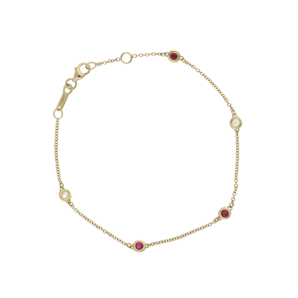 18ct Yellow Gold Ruby and Diamond Chain Bracelet