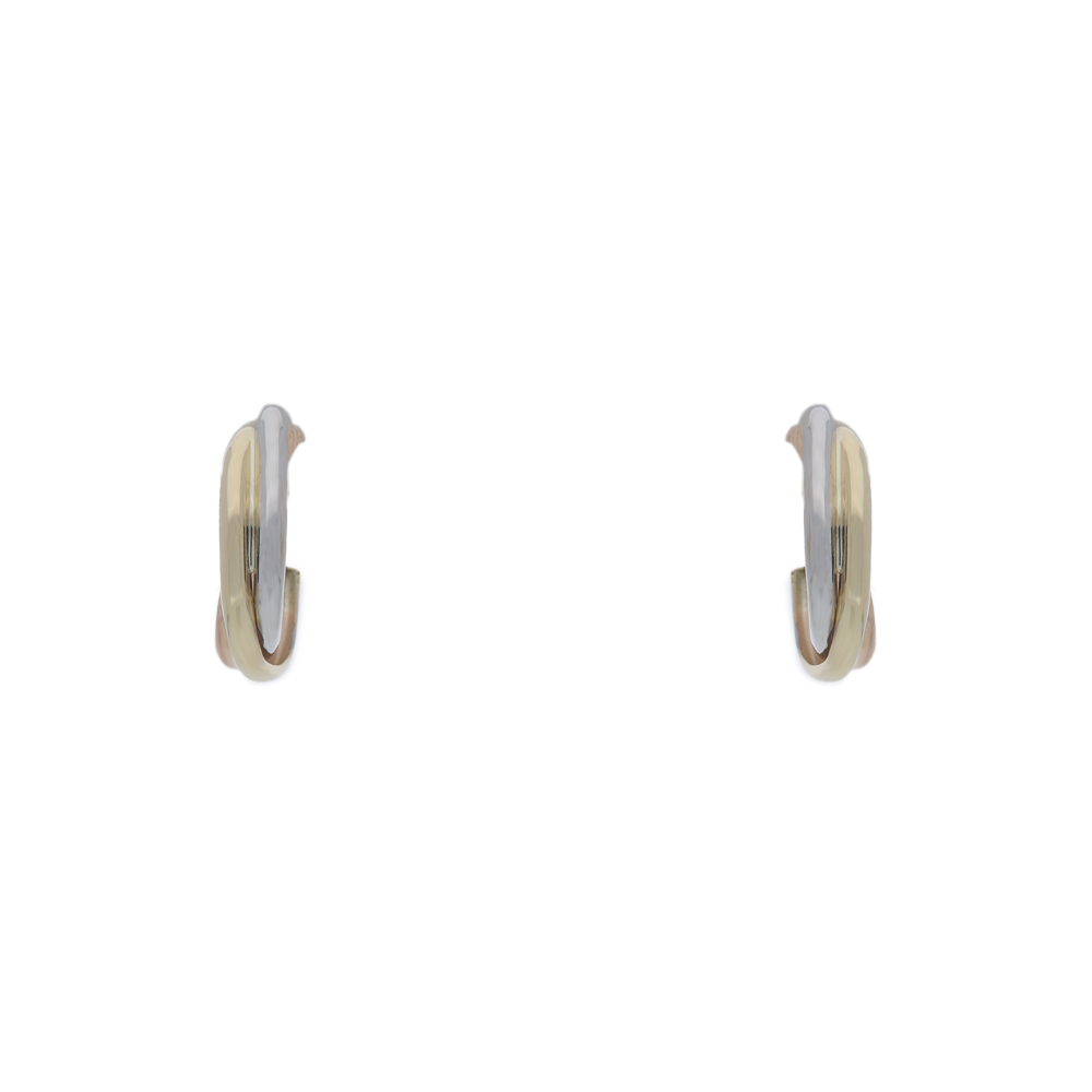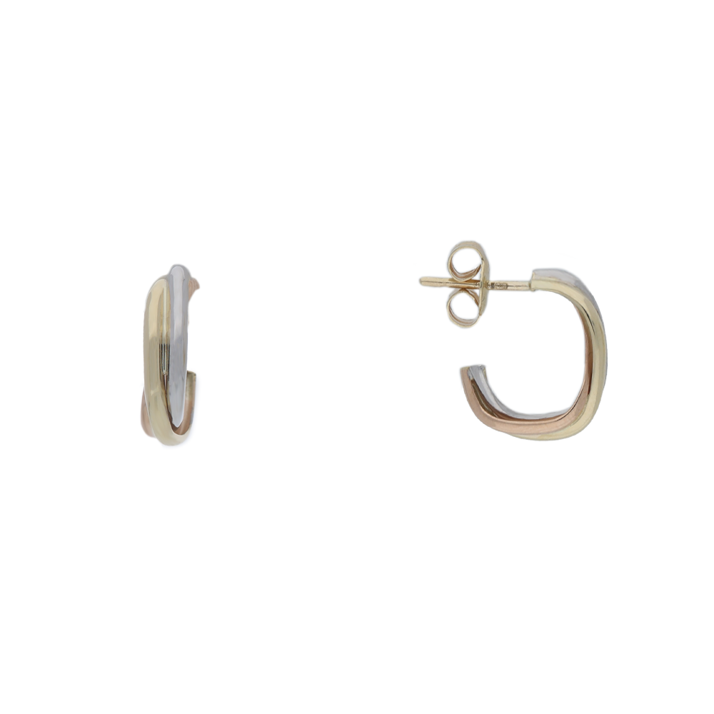 9ct Gold Three Tone Twisted Half Hoop Earrings