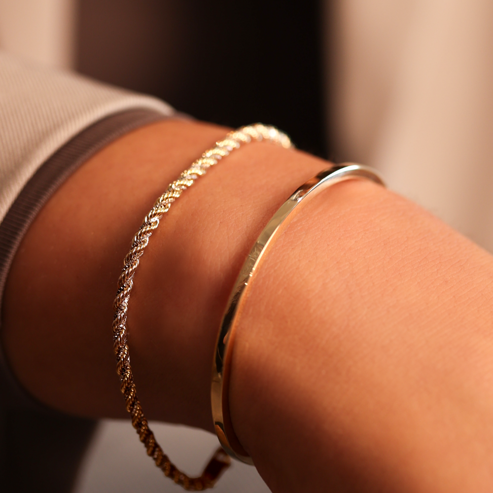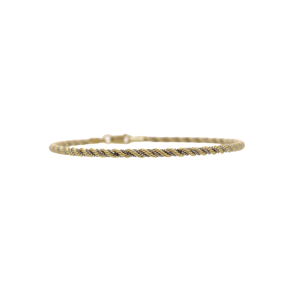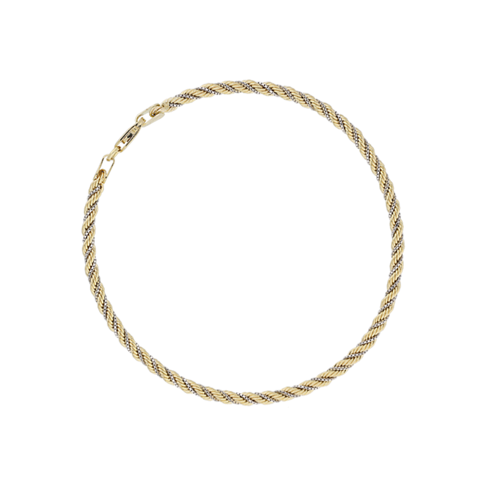 This 9ct yellow and white gold bracelet features a stunning twisted rope design, blending two tones of gold for a look that’s both classic and contemporary. Measuring 19cm, it offers a comfortable fit and a radiant finish that catches the light beautifully.