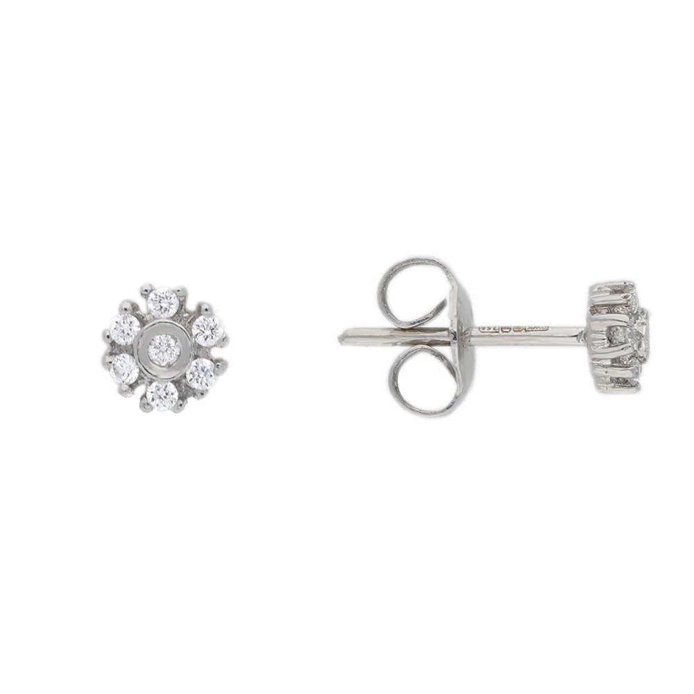 9ct White Gold Diamond Floral Earrings
