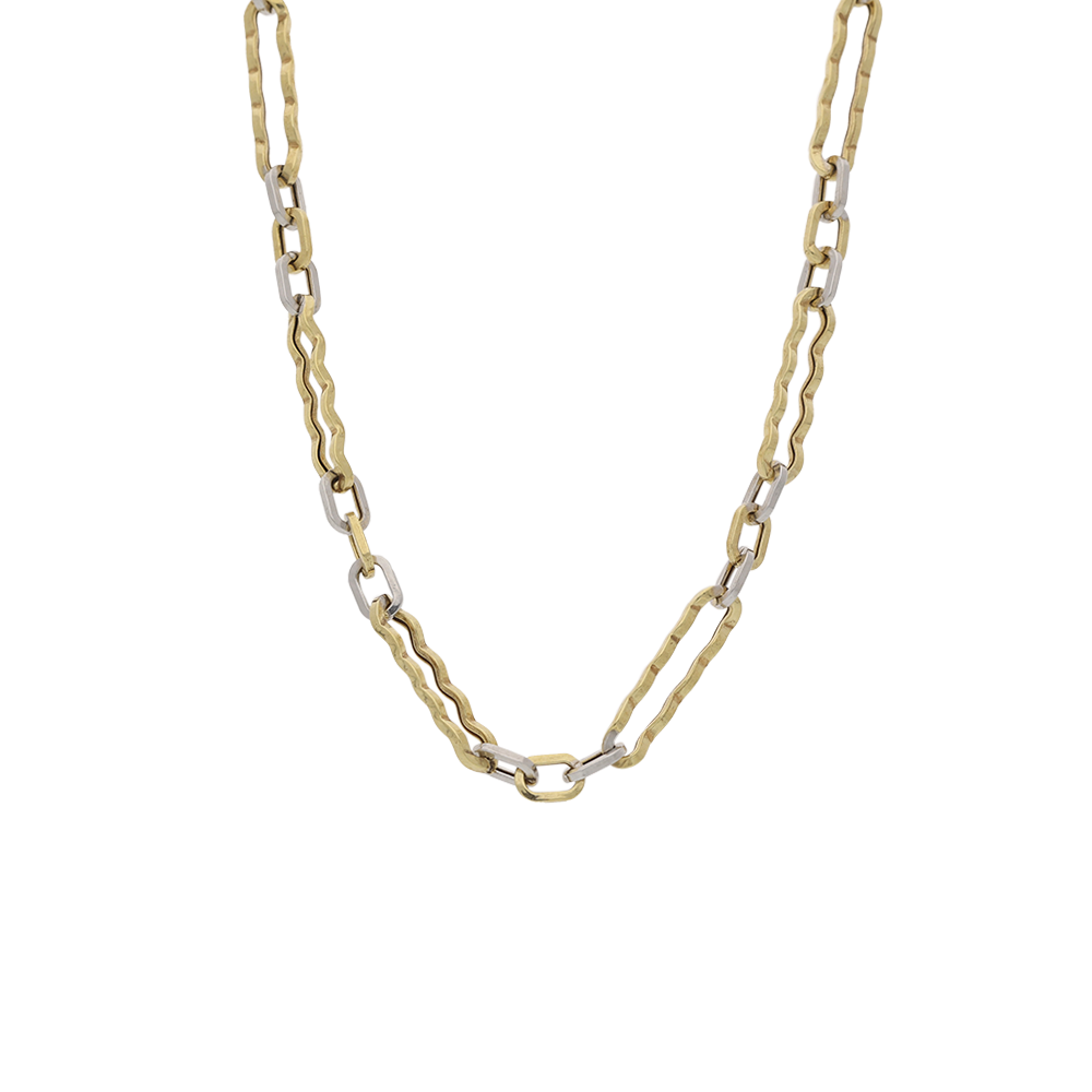 9ct Yellow and White Gold Waffle Oval Chain