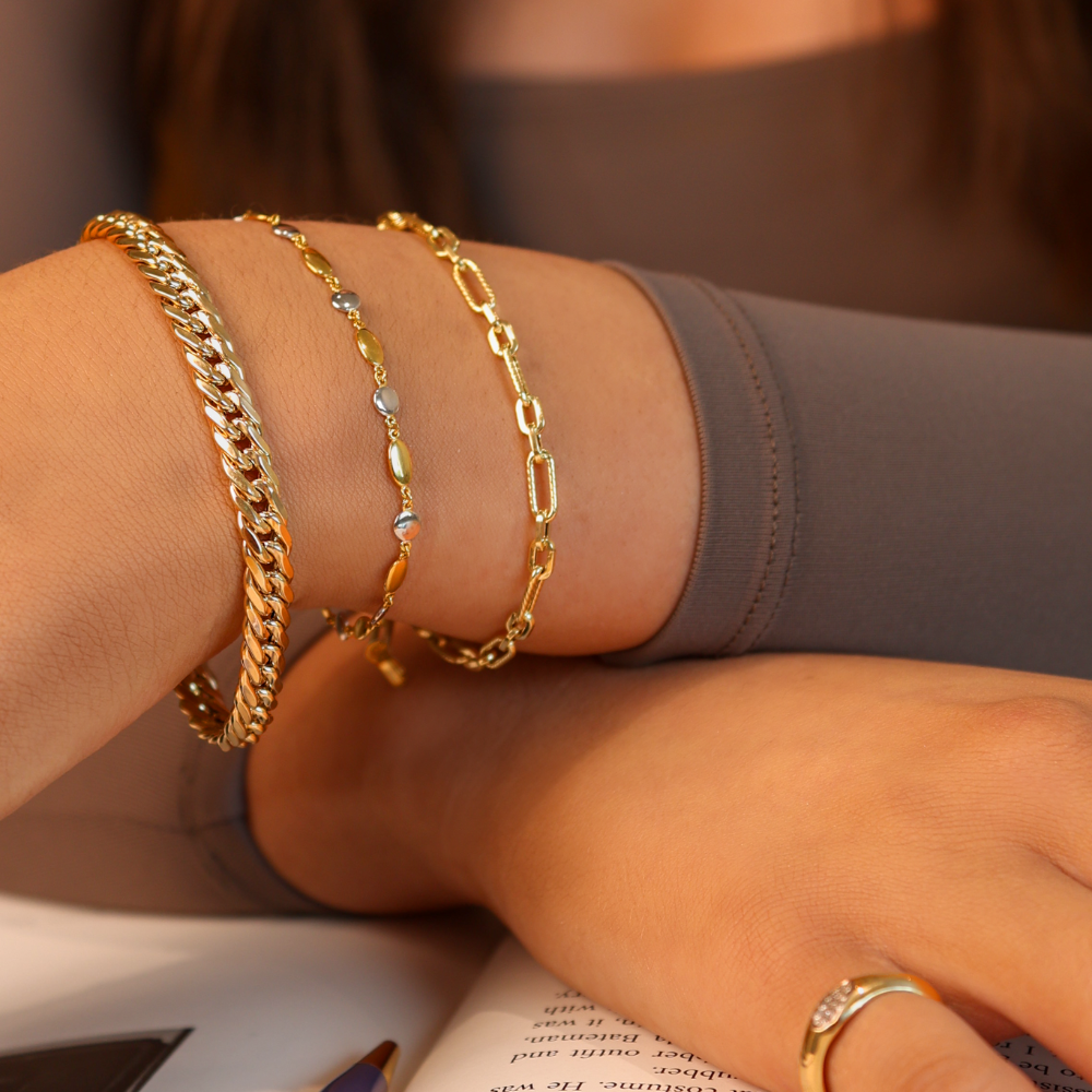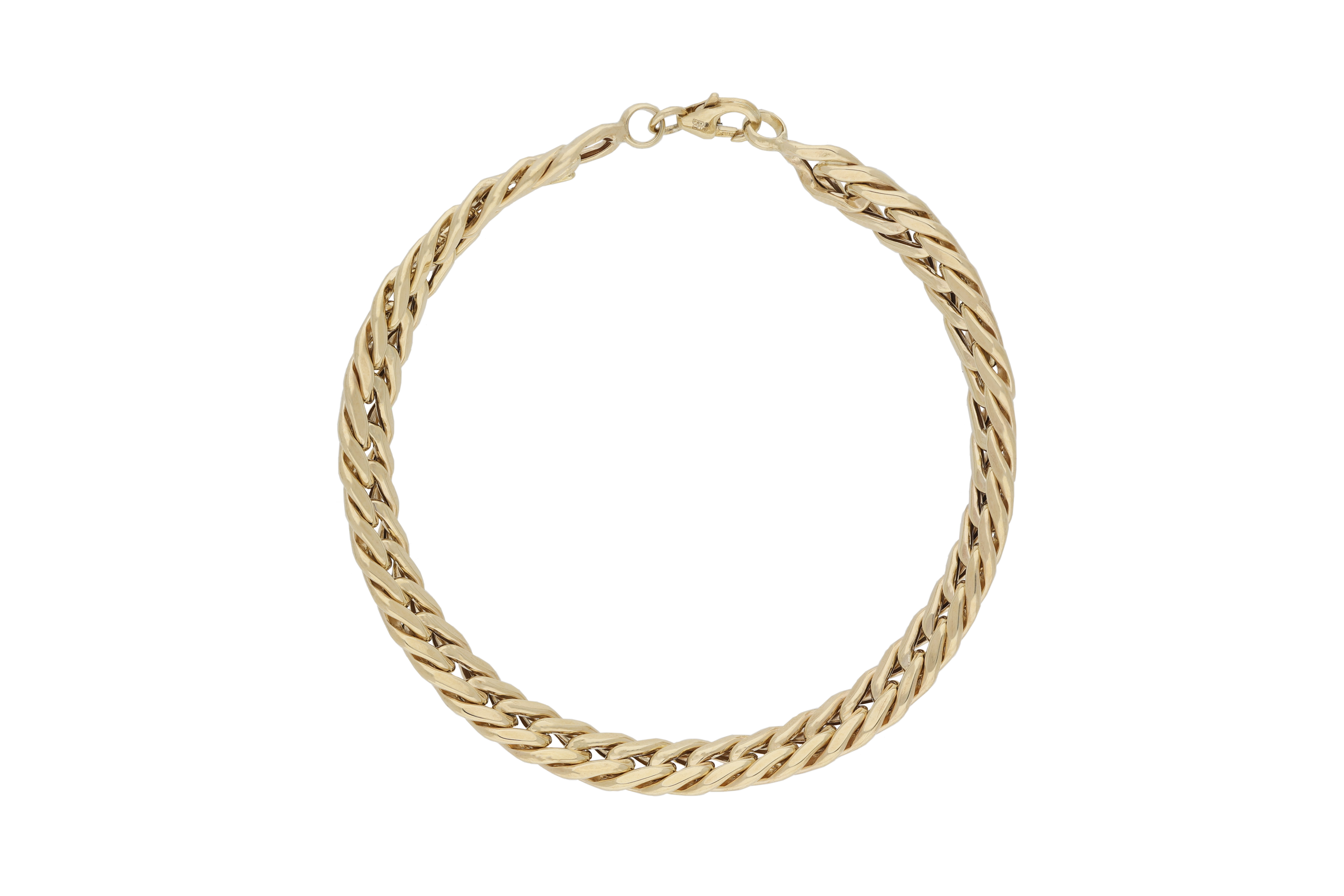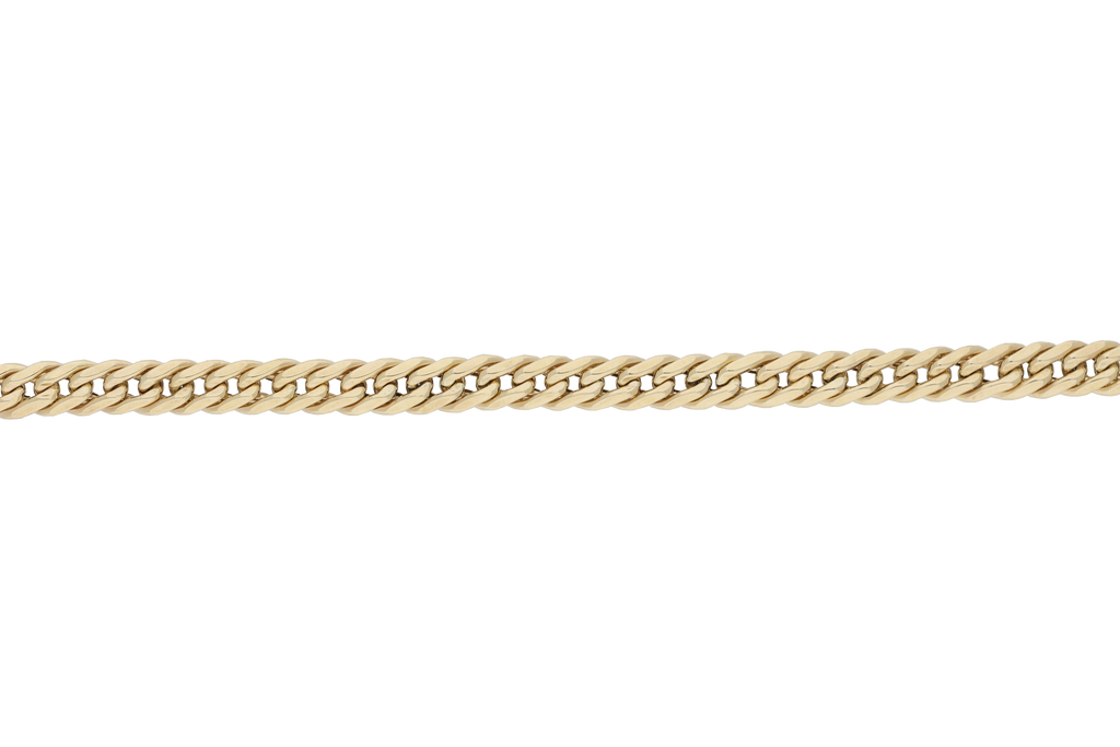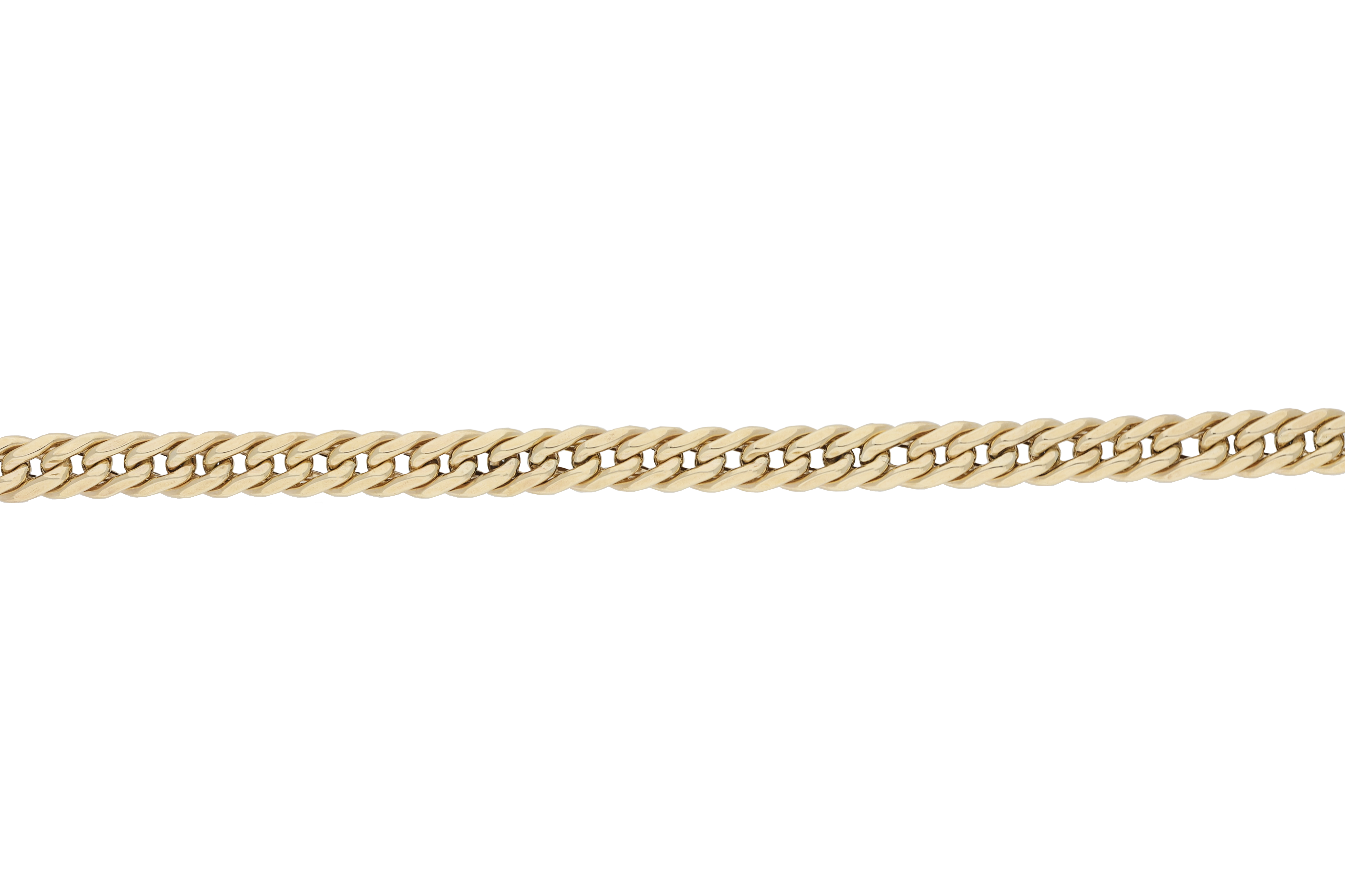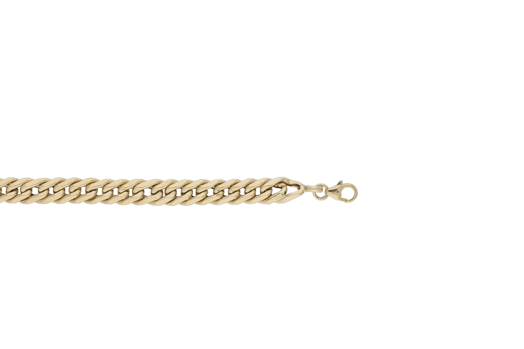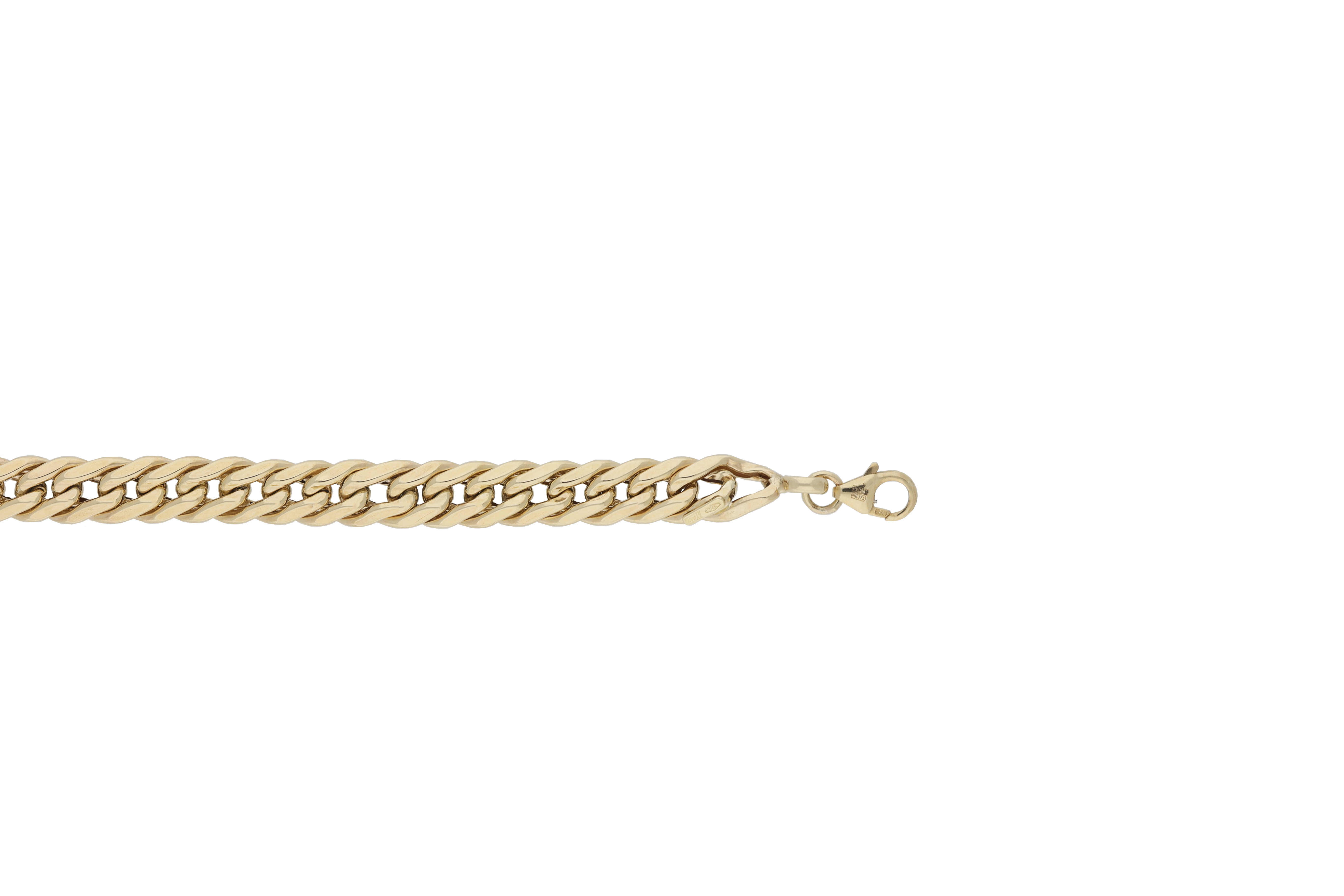 This 9ct yellow gold bracelet features a classic design of flattened curb links, offering a sleek and polished look with timeless appeal. Measuring 19.5cm, it provides a comfortable fit and a radiant finish that enhances the rich golden tone.