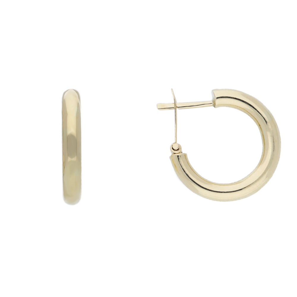 These classic tube hoops are made in polished 9ct yellow gold and offers a smooth, rounded design. Measuring 15mm in diameter, they offer a versatile size suited to everyday wear. A secure hinge clasp ensures comfortable and reliable fastening, making this pair a timeless addition to any jewellery collection.