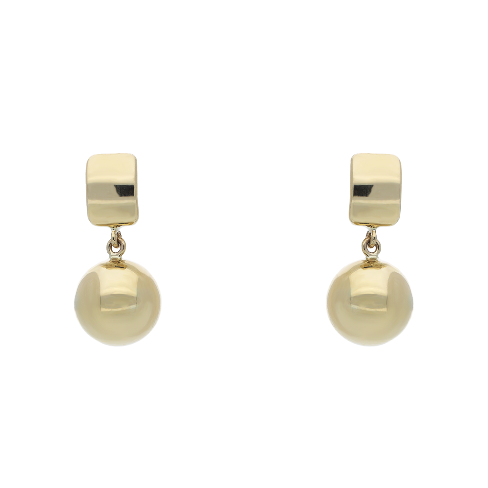 9ct Yellow Gold Rectangular Ball Drop Earrings