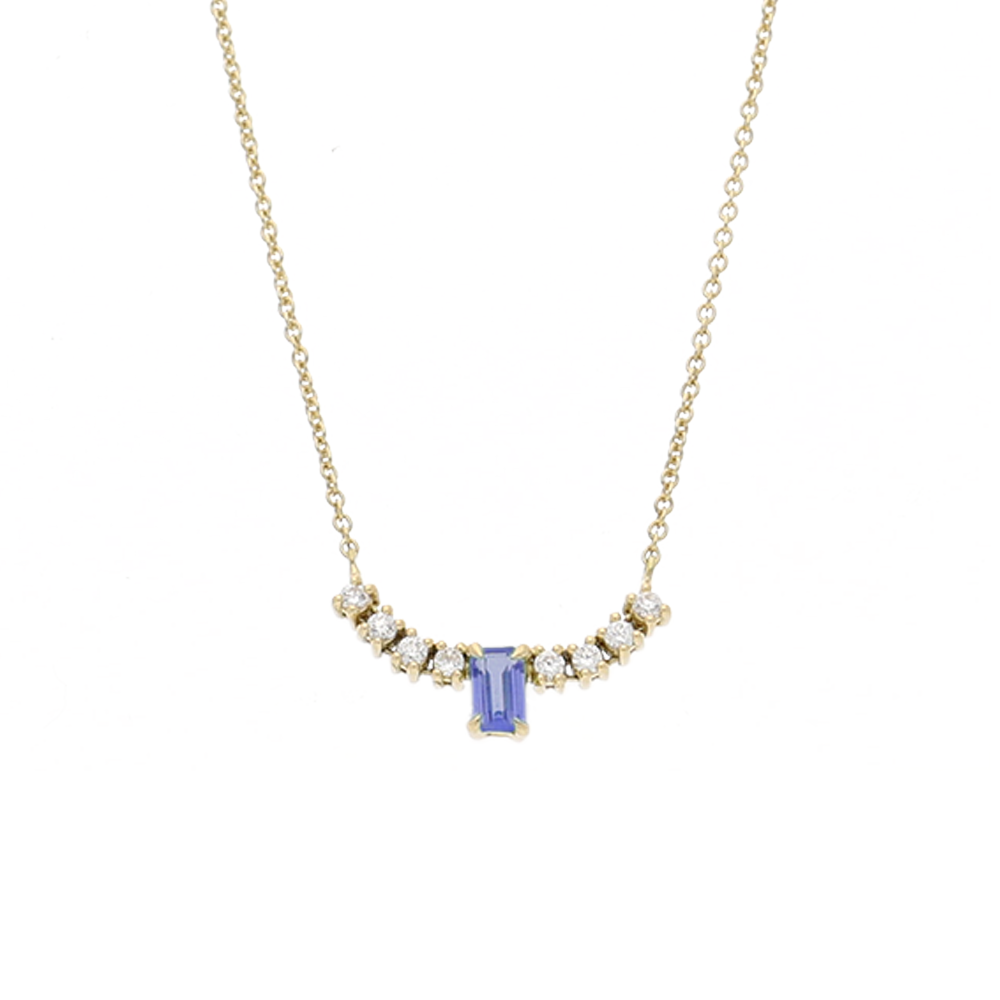 9ct Yellow Gold Sapphire and Cubic Zirconia Cresent Necklace