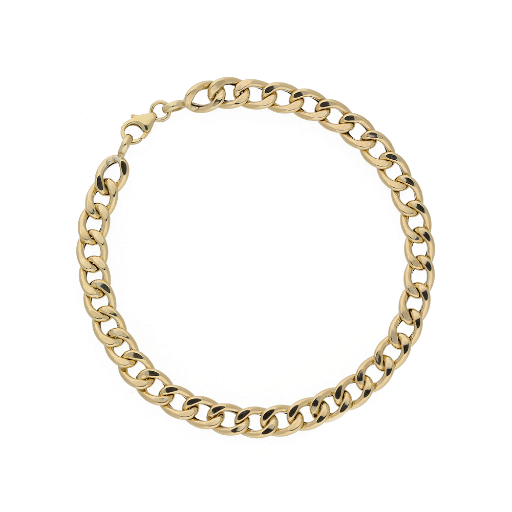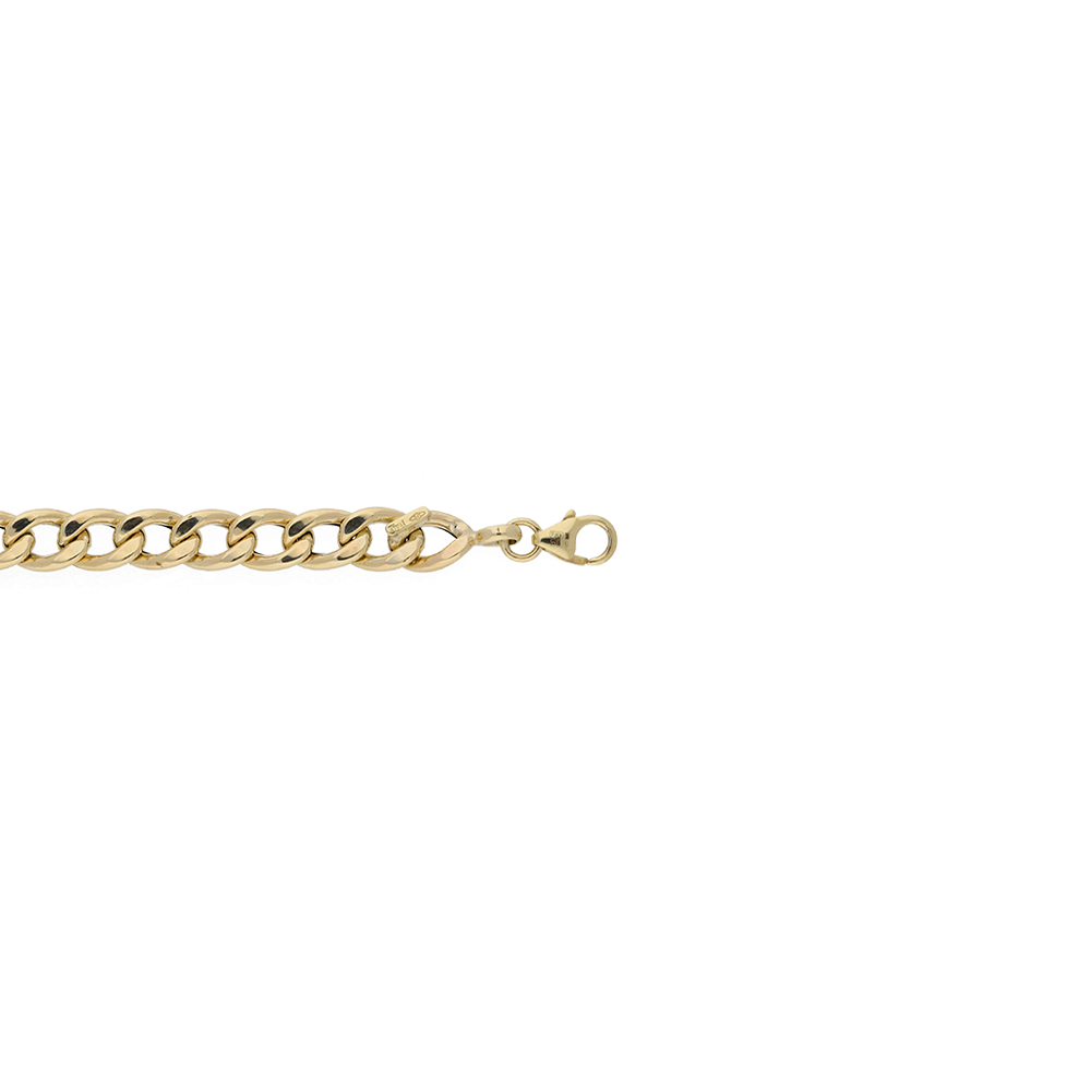 This 9ct yellow gold bracelet features a bold and contemporary squared curb link design, offering a modern twist on a classic style. Measuring 20cm, it provides a comfortable fit and a polished finish that highlights the rich, warm hue of yellow gold.