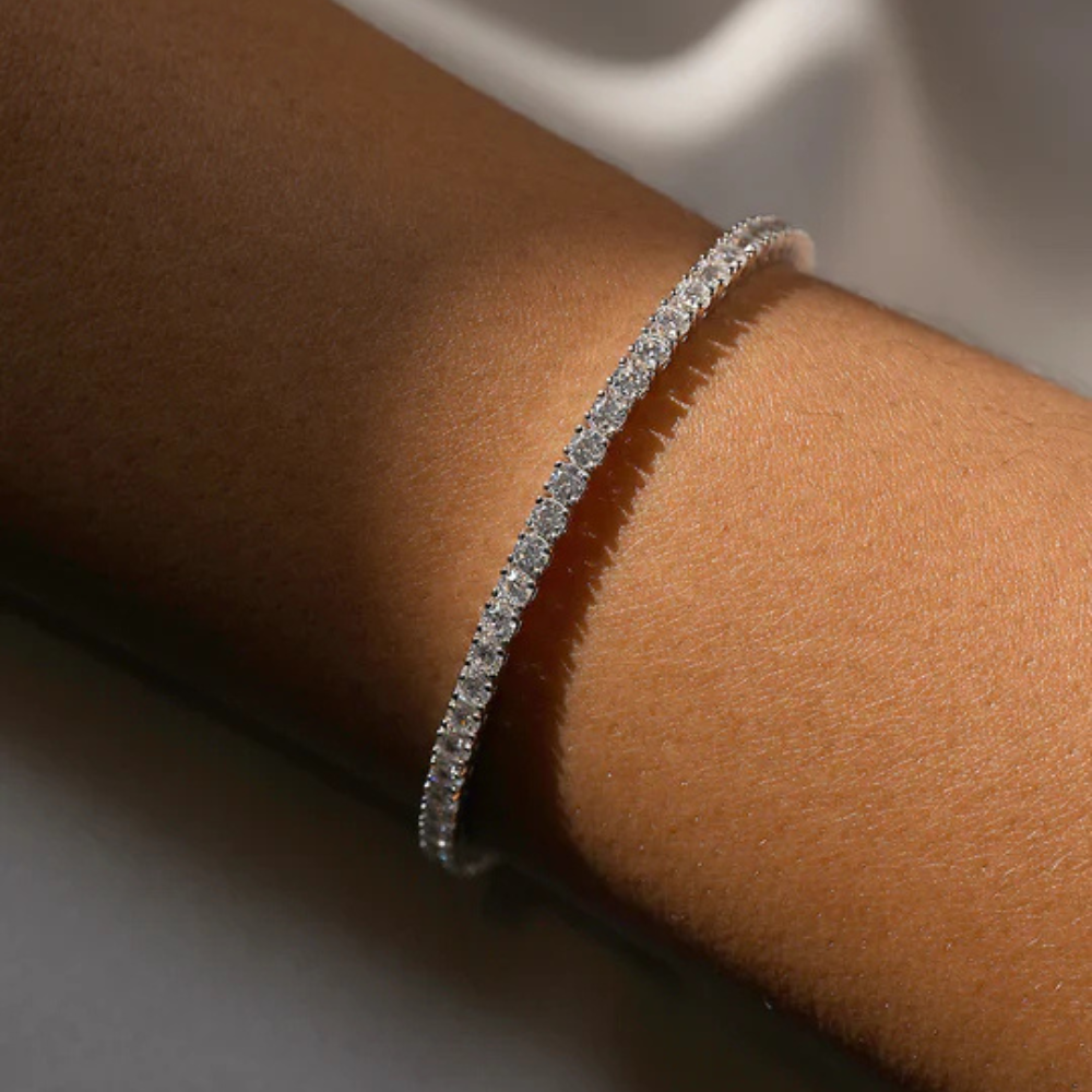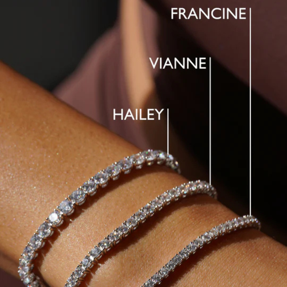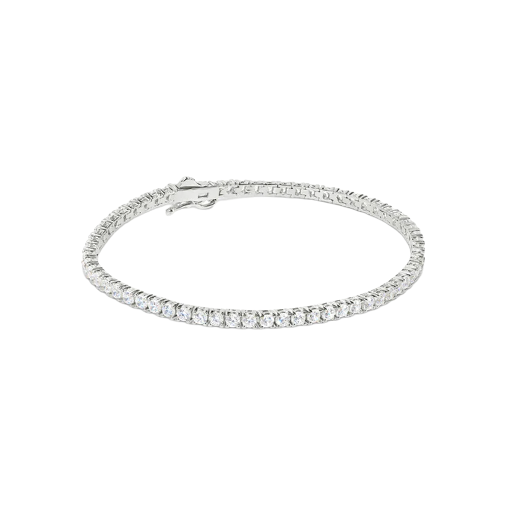 A timeless staple for every jewellery collection, the Francine Tennis Bracelet is made in sterling silver with white gold plating. This delicate line bracelet features exquisitely cut and polished Round Brilliant stones, designed to catch the light and sparkle with every movement. Simple, elegant, and effortlessly versatile, it is the perfect everyday essential.