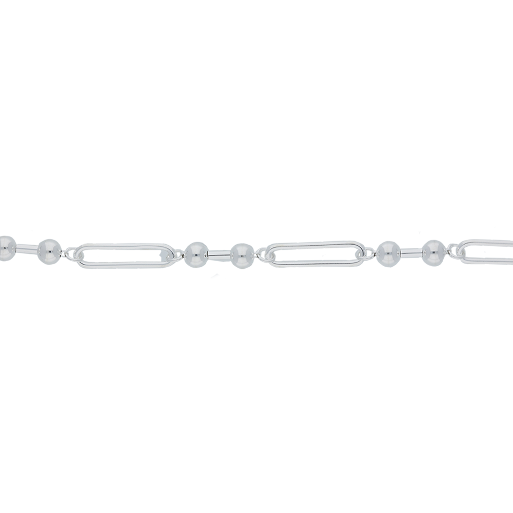 The contemporary bracelet features an elegant interplay of polished sterling silver beads and elongated open links, creating a modern silhouette. Designed for effortless everyday wear, it is finished with an adjustable extension chain, lengths between 17cm and 19cm for a comfortable and secure fit. A versatile piece that layers beautifully or stands alone with understated sophistication.
