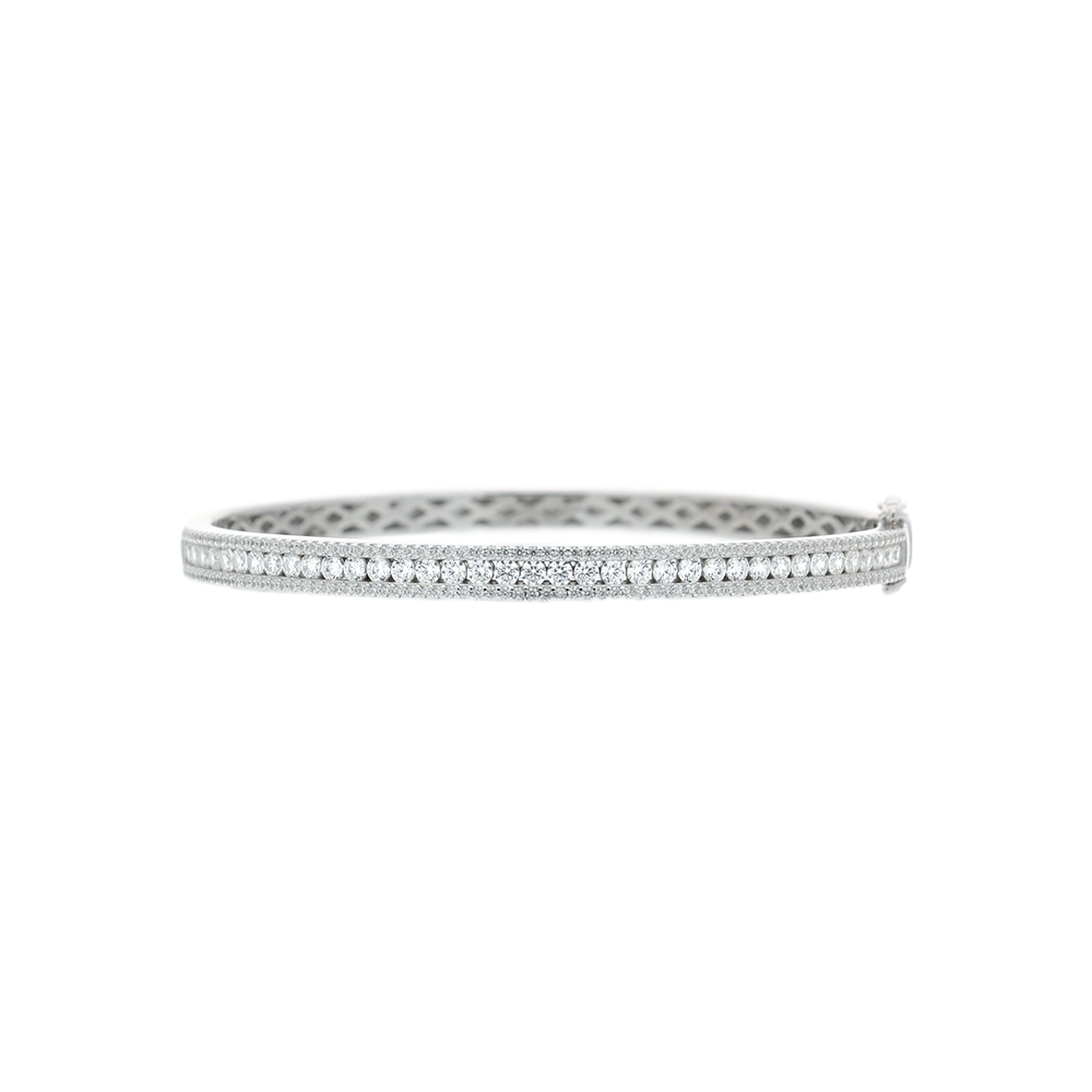 Sterling Silver Three Row Cubic Zirconia Bangle