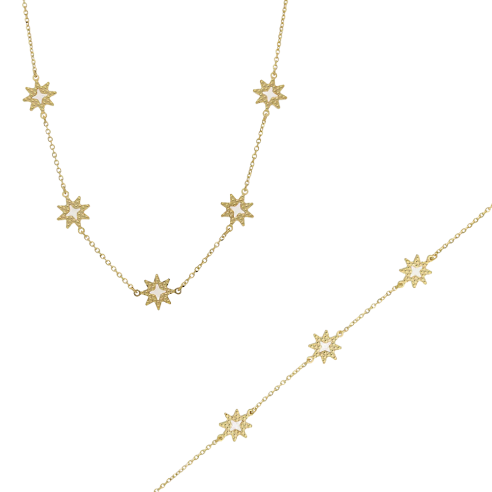 9ct Yellow Gold Mother of Pearl Necklace and Bracelet