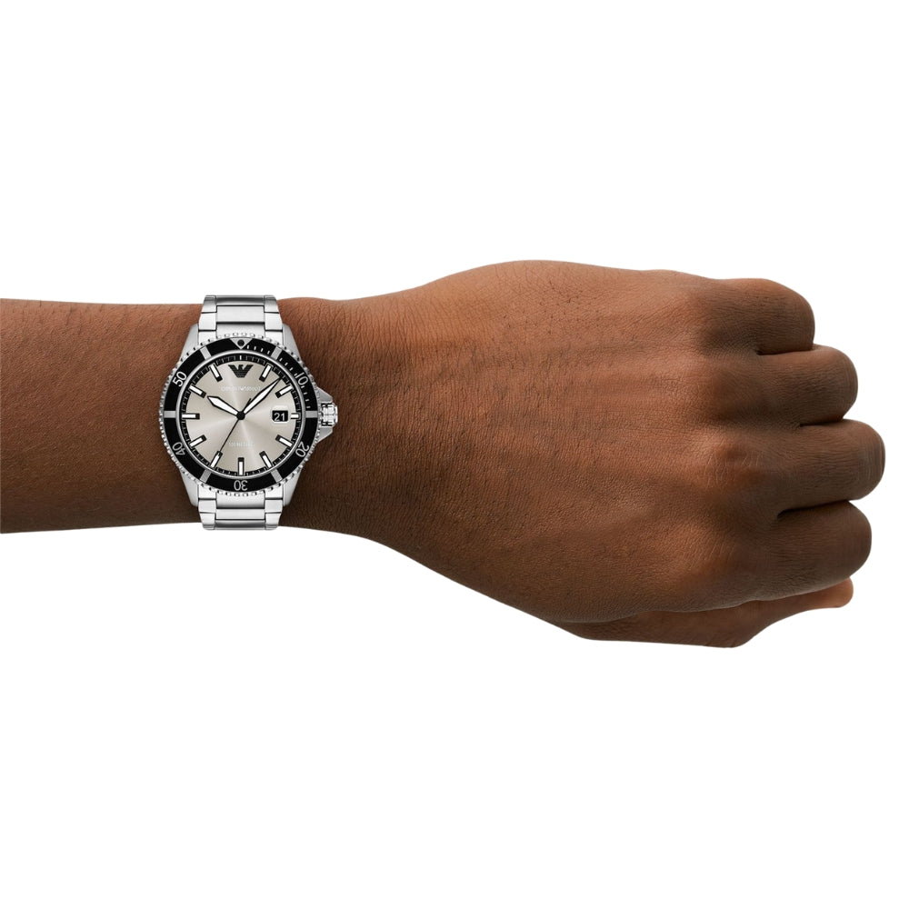 The Emporio Armani World Explorer Grey Dial Watch delivers a bold style with dependable performance. Featuring a 42mm stainless steel case and bracelet paired with a striking black bezel. The sleek grey dial adds a modern edge, while the reliable quartz movement ensures accurate timekeeping. With 100 meters water resistance, this timepiece is as functional as it is stylish.