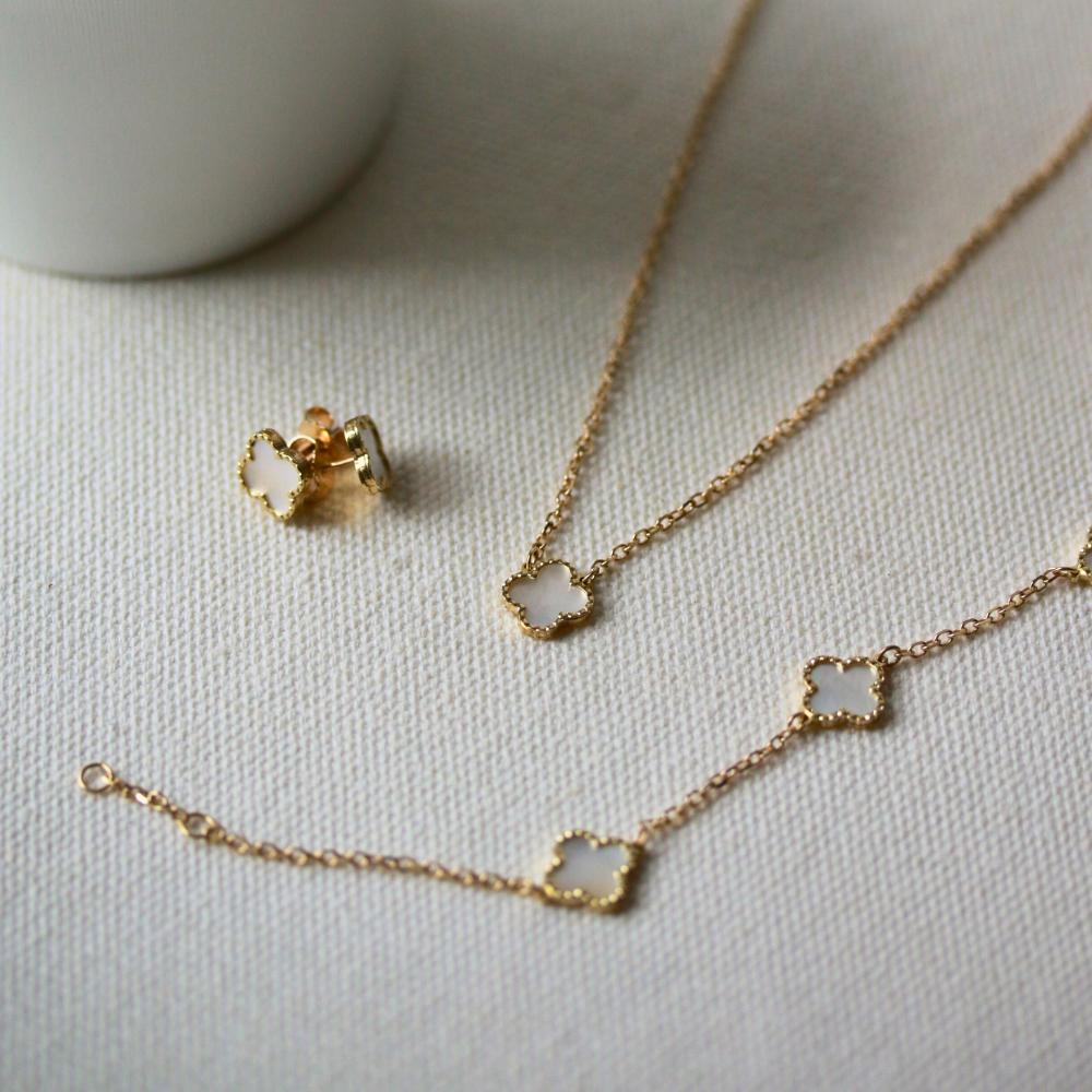 9ct Mother of Pearl Clover Necklace & Bracelet
