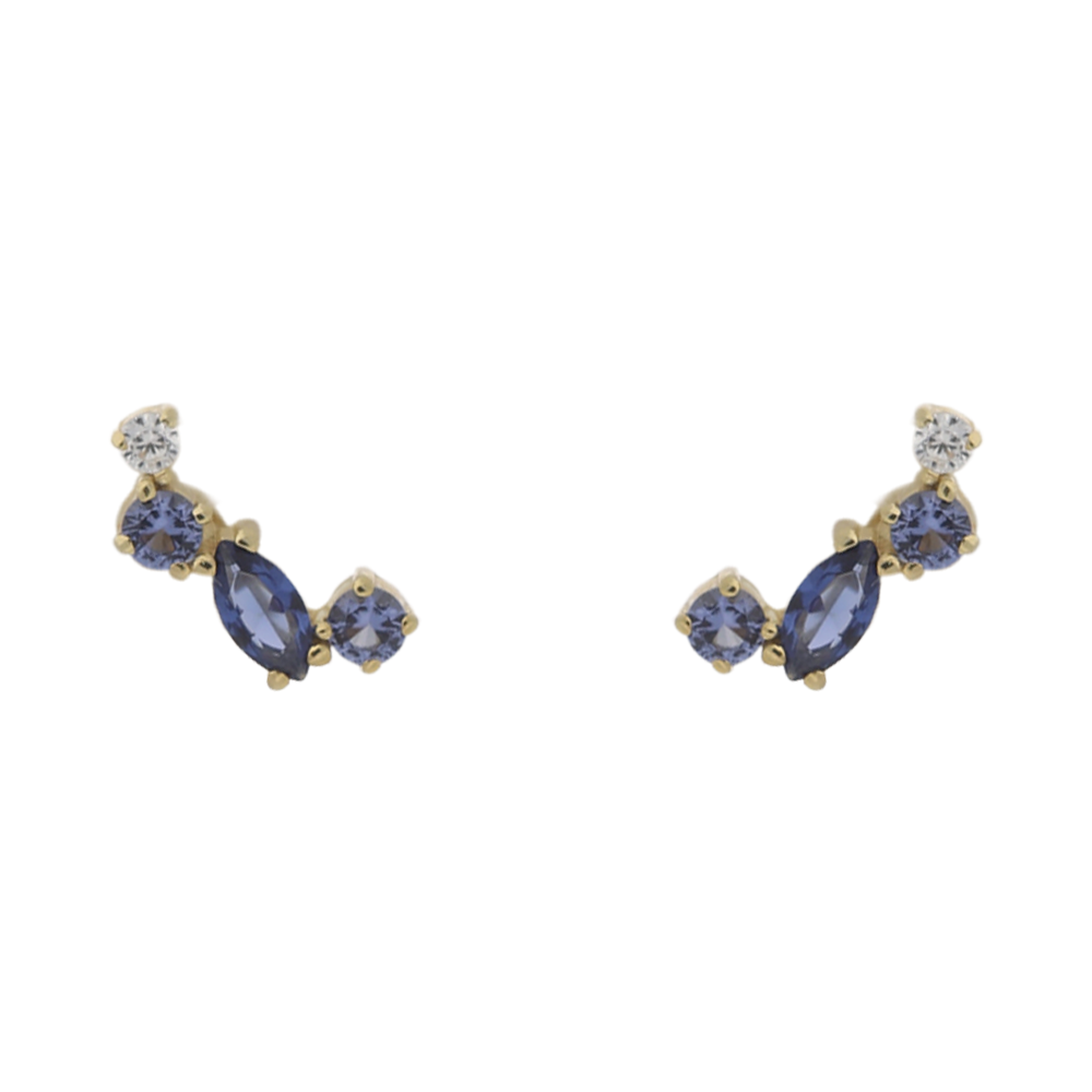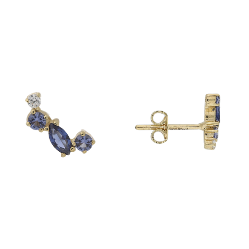 9ct Yellow Gold Blue Cubic Zirconia Climber Earrings