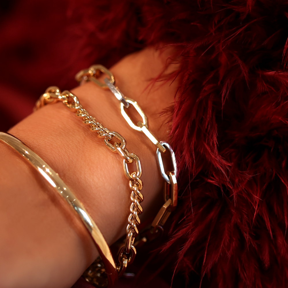 This 9ct yellow gold bracelet combines classic elegance with a modern twist, featuring smaller round links and larger squared oval flat links. Measuring 19cm, it offers a secure and comfortable fit while showcasing a polished finish that enhances the warm golden hue.