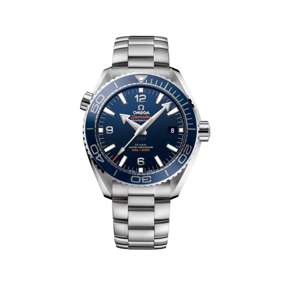 This 43.5mm stainless-steel model features a blue ceramic dial with Arabic numerals and a date window at 3 o'clock. The blue ceramic unidirectional bezel, complete with OMEGA Liquidmetal™ diving scale, ensures precision timing for underwater adventures. Scratch-resistant sapphire crystal protects the dial, while an alveol screw-in caseback adds both style and durability. With a stainless-steel bracelet with OMEGA's patented extendable fold over clasp for secure and comfortable wear. Water-resistant to 600 metres (2000 feet / 60 bar) and equipped with a helium-escape valve. At the heart of this professional timepiece is the OMEGA Master Chronometer Calibre 8900, visible through the transparent caseback. METAS-certified, this movement has passed eight rigorous tests, ensuring unparalleled precision, chronometric performance, and magnetic resistance.
