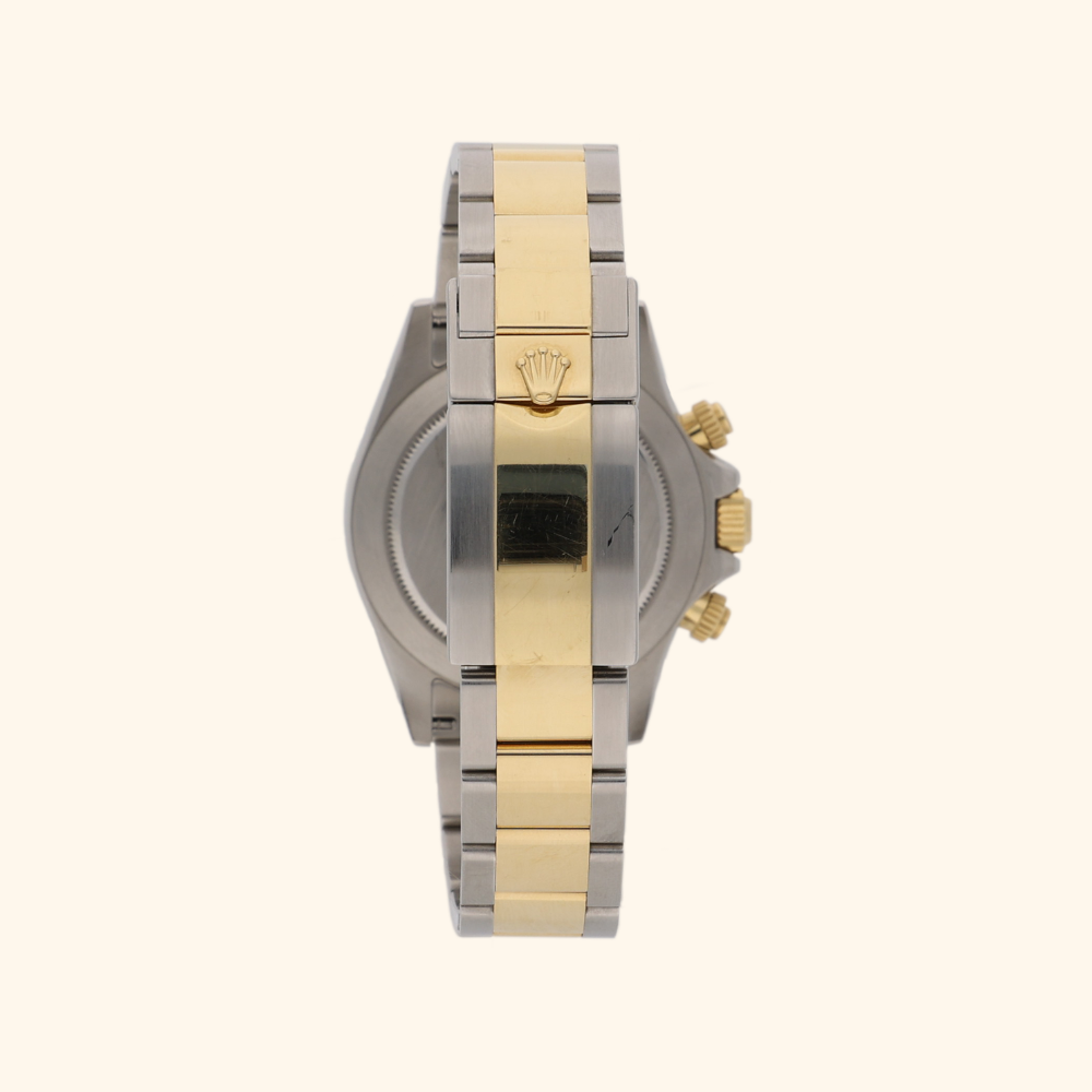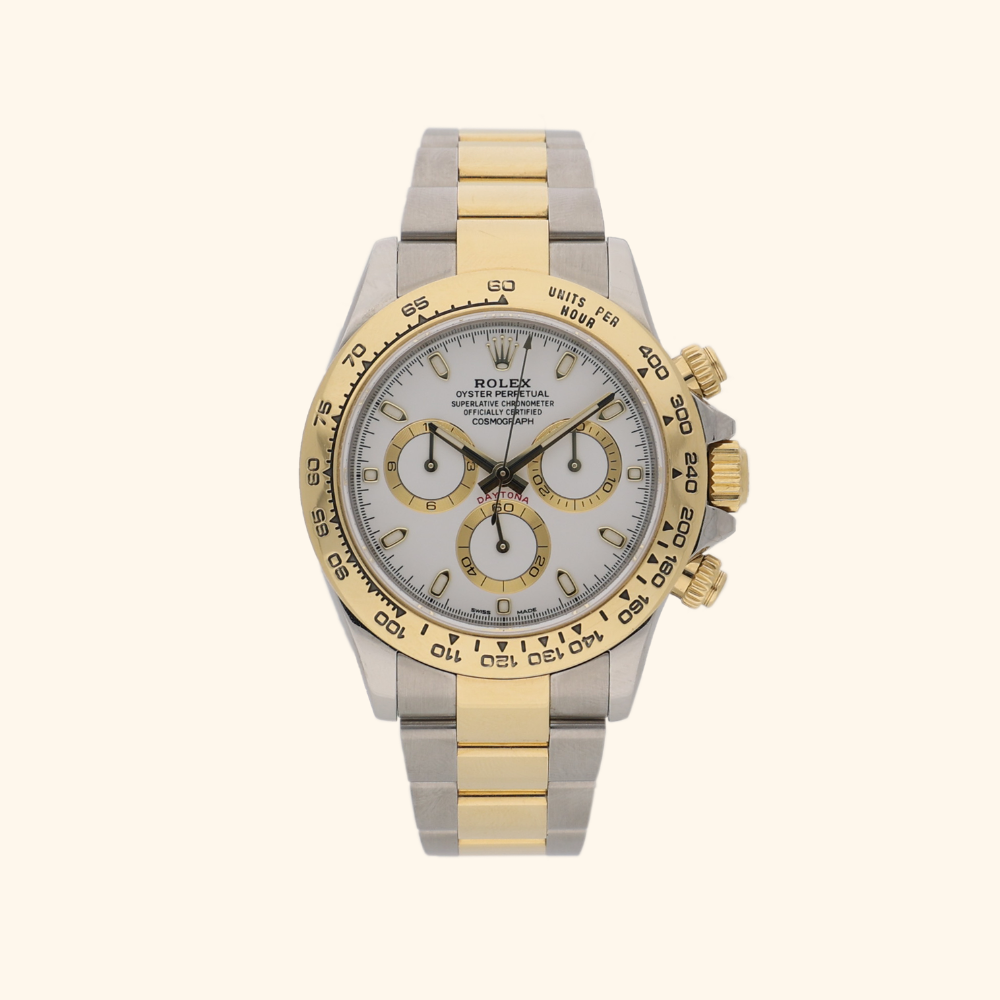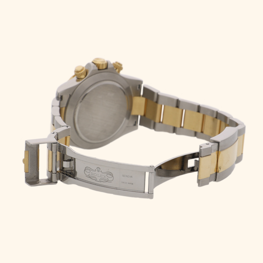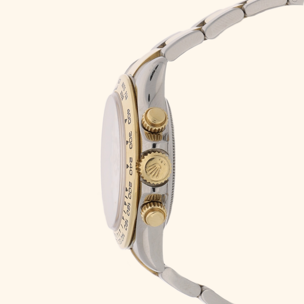 This Pre-Owned Rolex Cosmograph Daytona is an enduring symbol of precision and performance. Crafted in a 40mm Oystersteel and yellow gold case, it embodies the unmistakable character of one of Rolex’s most celebrated chronographs. The yellow gold dial adds warmth and presence, perfectly complementing the Oystersteel and yellow gold bracelet. Powered by an automatic movement with a 72-hour power reserve, this timepiece delivers reliability and technical excellence in equal measure.