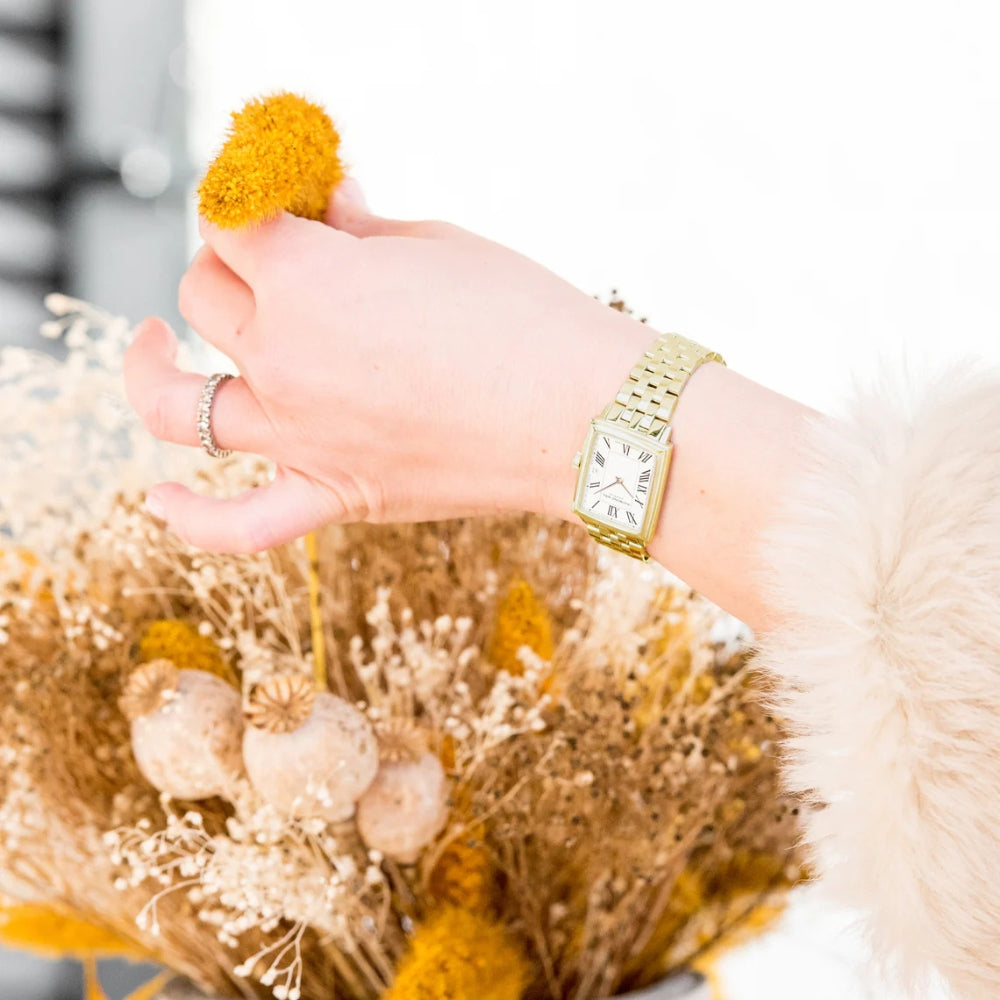 The Raymond Weil Toccata 22mm White Dial Watch features a yellow gold PVD stainless steel case and matching bracelet, delivering a clean and elegant look. Its crisp white dial keeps the design refined and timeless, while the quartz movement provides dependable and accurate timekeeping. Finished with 50 meters water resistance, this watch is a stylish and versatile choice.