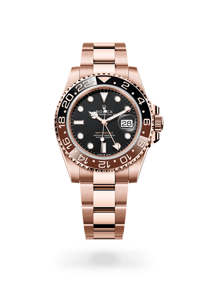 The GMT-Master II has an instantly recognizable design with a graduated bezel insert, which is available in various dual-colour combinations – the lower half symbolizing daytime and the upper signalling night-time. With traditional hour, minute and seconds hands, its triangle-tipped 24-hour hand and bidirectional rotatable bezel with a 24-hour graduated Cerachrom insert, the GMT-Master II can display the time in two time zones simultaneously: either the local time and the reference time, or the local time and that of an alternative time zone.
