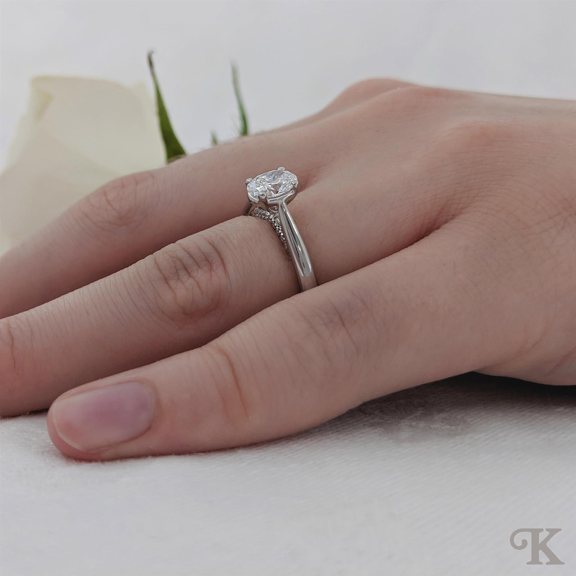 Platinum Solitaire Solitaire Oval cut Diamond engagement ring in a Platinum Claw Set on a Platinum Plain Band 0.80ct total G Colour
