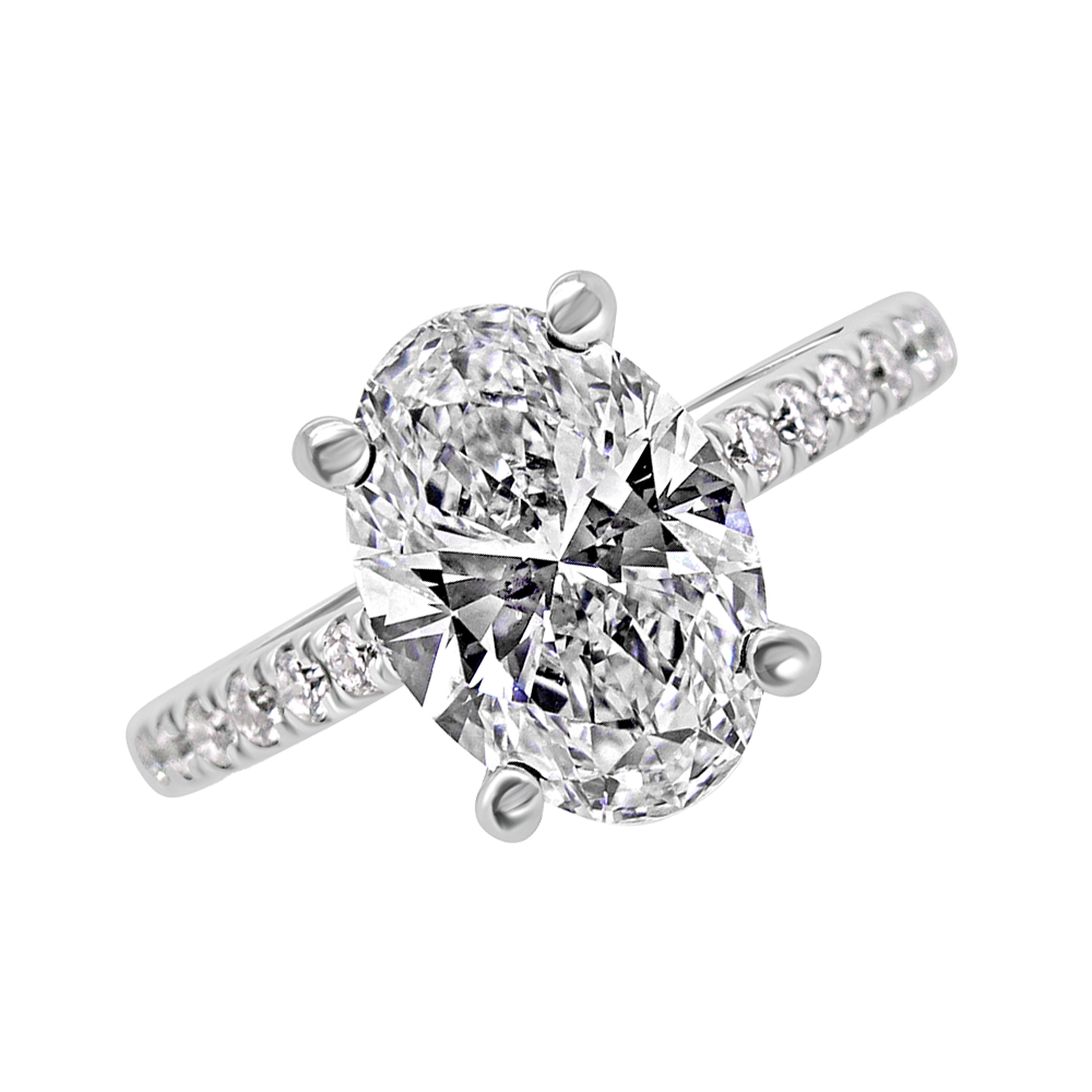 Platinum Oval Cut 3.5ct Diamond Pave Engagement Ring