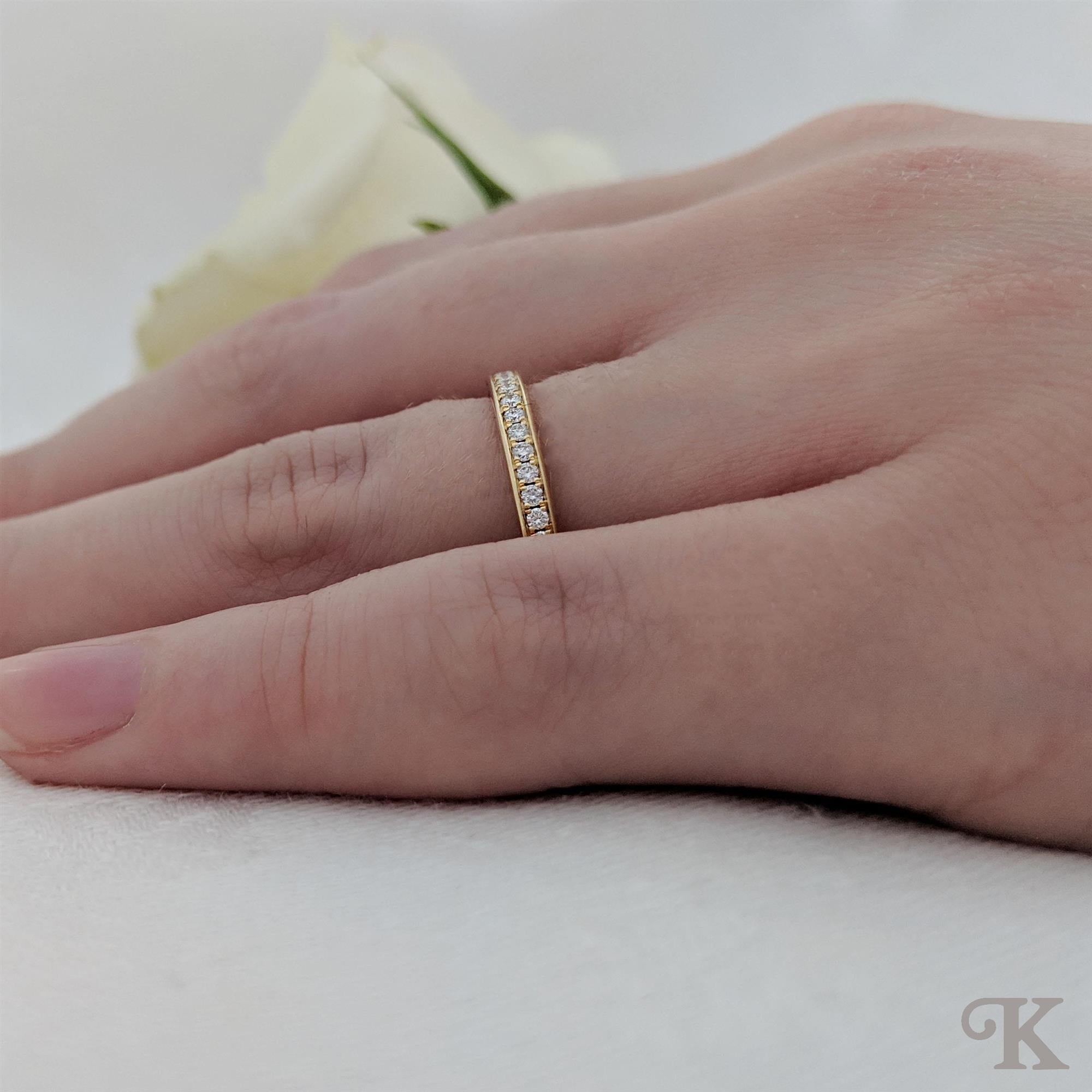 18ct Yellow Gold Bridal The perfect compliment to our engagement rings. This wedding band combines understated elegance with unique design. 0.15ct total