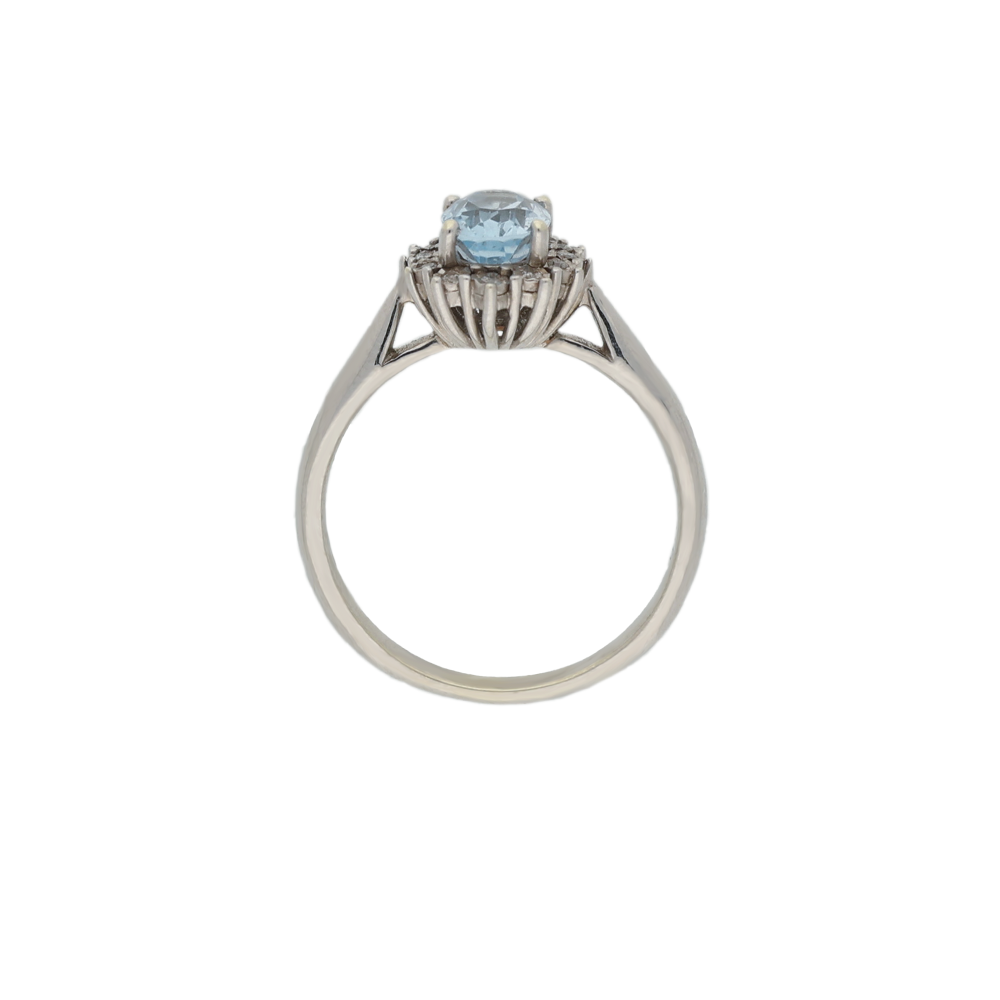 9ct White Gold Blue Topaz Diamond Cluster Ring