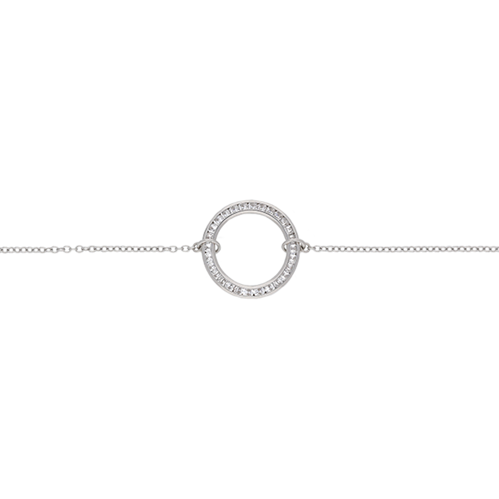 9ct White Gold Cubic Zirconia Open Circle Chain Bracelet