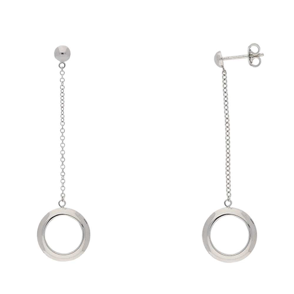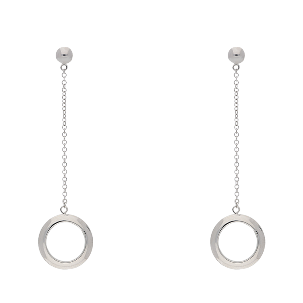 These sleek 9ct white gold earrings feature a minimalist open-circle motif suspended from a graceful drop. Measuring 33mm in total length with a 13mm open circle at the base, their clean, polished finish offers a modern yet timeless look. Light and versatile, they are the perfect choice for effortless everyday style.