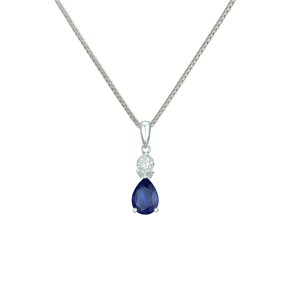 9ct White Gold Pear-Cut Sapphire and Diamond Pendant