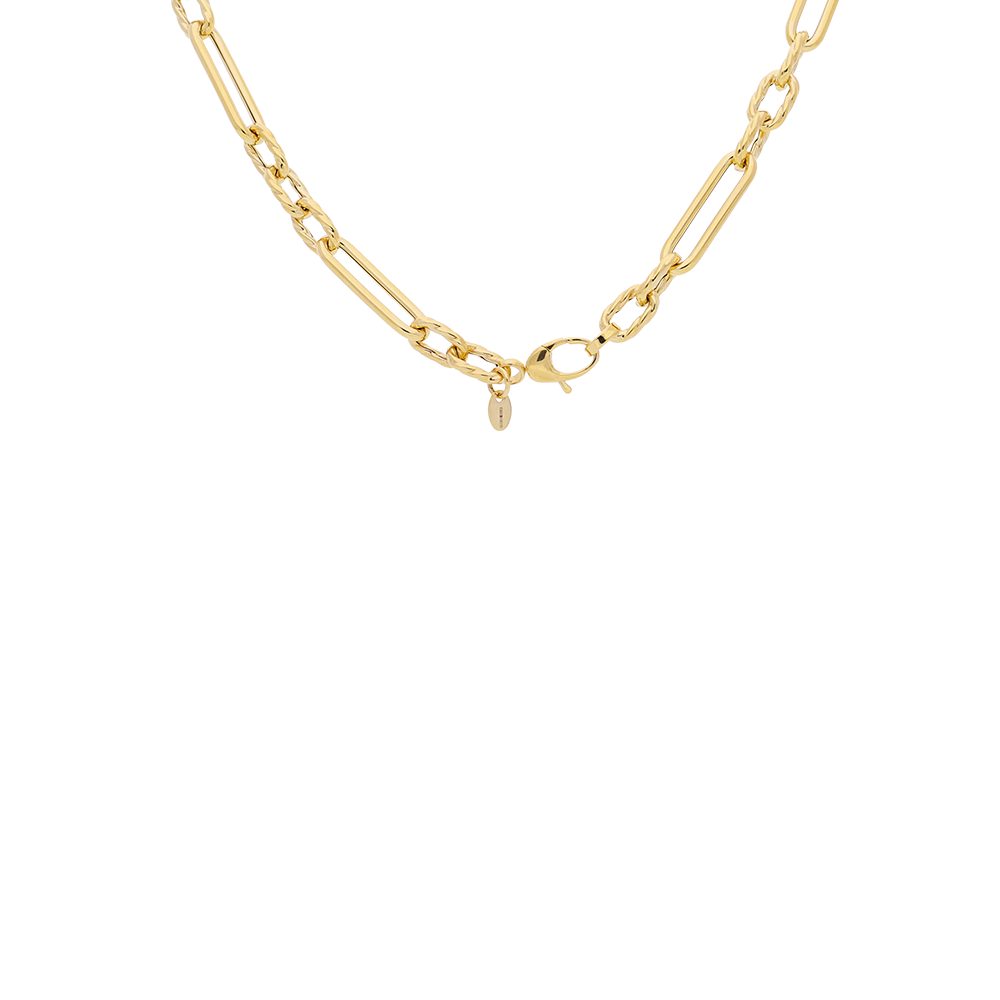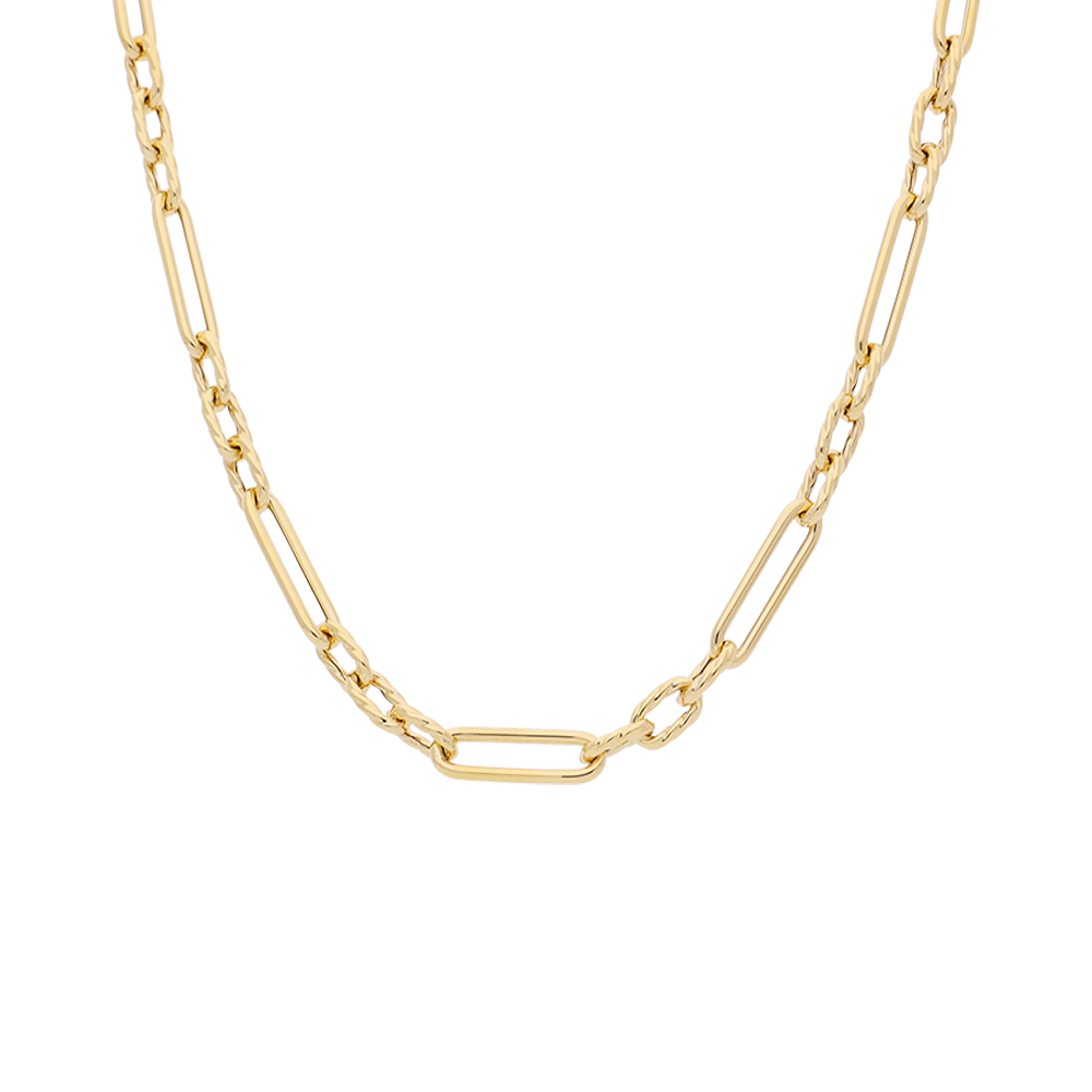 Crafted in 9ct yellow gold, this necklace features a distinctive sequence of three delicately twisted oval links paired with a single, larger oval link for visual contrast. The gentle twist adds movement and a touch of sparkle, while the 45cm length offers a flattering fit that sits gracefully on the collarbone.