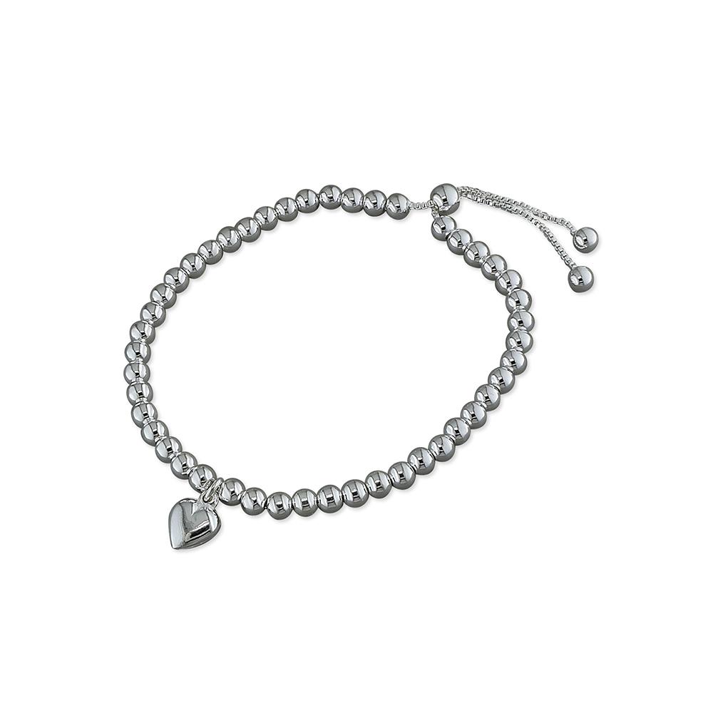 Sterling silver beed bracelet featuring a rose plated heart charm.