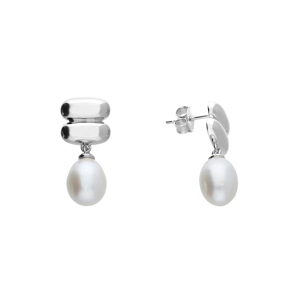 Created from high-quality 925 sterling silver, this elegant set pairs a luminous pearl pendant with matching stud earrings. The necklace features a single pearl suspended beneath a sleek, sculptural silver setting, suspended from a fine silver chain that rests delicately at the neckline. The coordinating stud earrings showcase a modern chunky double bar design, each topped with a delicate drop pearl and secured with butterfly backs for comfort and stability during everyday wear. Perfect for layering or wearing as a complete set, this collection combines contemporary design with timeless pearl elegance—ideal for both everyday sophistication and special occasions.