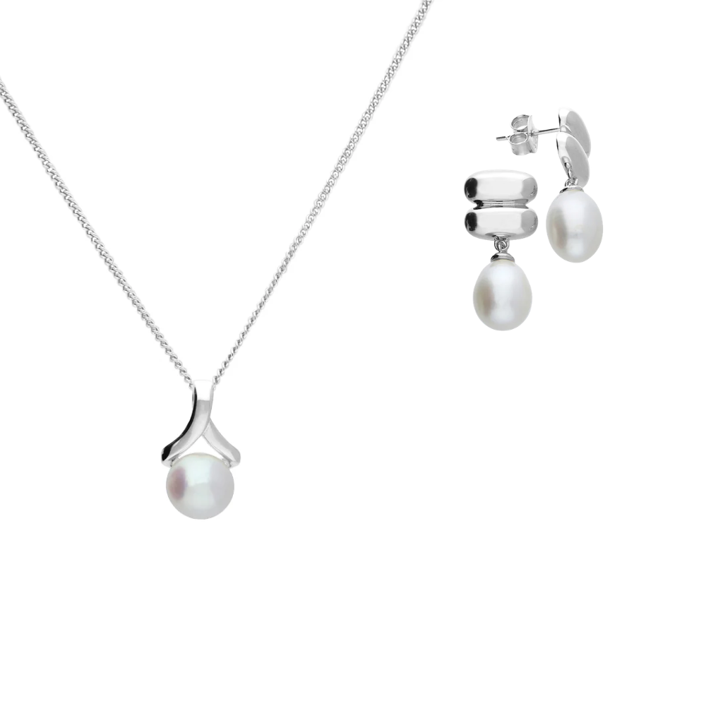 Sterling Silver Pearl Drop Earrings and Pendant Set